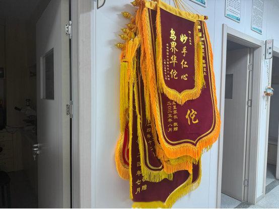 医院墙上挂着的厚厚一叠锦旗