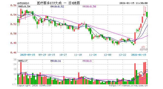 1月15日,截止午间收盘,医疗服务ETF大成(516610)跌2.01%,报0.535元,成交额705.10万元。医疗服务ETF大成(516610)重仓股方面,迈瑞医疗截止午盘跌1.89%,联影医疗跌3.43%,爱尔眼科涨0.77%,爱美客跌1.92%,惠泰医疗跌1.10%,新产业跌1.56%,鱼跃医疗跌5.66%,乐普医疗跌2.96%,福瑞股份跌1.54%,英科医疗涨1.35%。