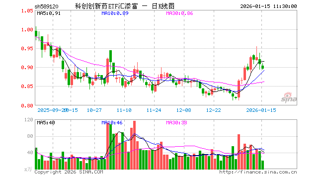 1月15日,截止午间收盘,科创创新药ETF汇添富(589120)跌1.32%,报0.896元,成交额1840.82万元。科创创新药ETF汇添富(589120)重仓股方面,百济神州截止午盘跌0.47%,百利天恒跌3.58%,博瑞医药跌3.17%,君实生物跌1.82%,艾力斯跌1.53%,泽璟制药跌0.88%,荣昌生物涨3.80%,益方生物跌3.84%,特宝生物涨2.30%,迈威生物跌2.09%。