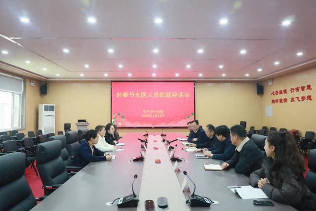 1月14日,邹平市中医院召开赴奉节支医人员凯旋座谈会。邹平市中医院党委书记杨恒宝,党委副书记、院长张兆国,支医人员蒙欢及部分党委委员,相关科室负责人参加。