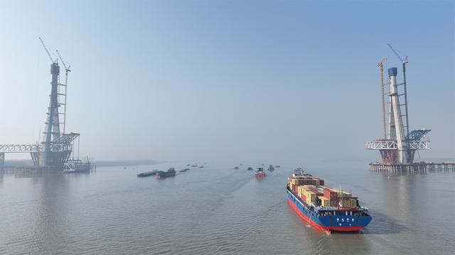 此次封顶的大桥4号主塔高272.7米,相当于83层楼的高度。据项目总工程师王令侠介绍,建设团队通过科研攻关,在模板设计、钢筋绑扎、混凝土浇筑等环节实现多项工艺创新,为高精度、高质量完成主塔施工奠定了坚实基础。