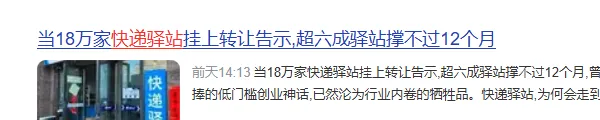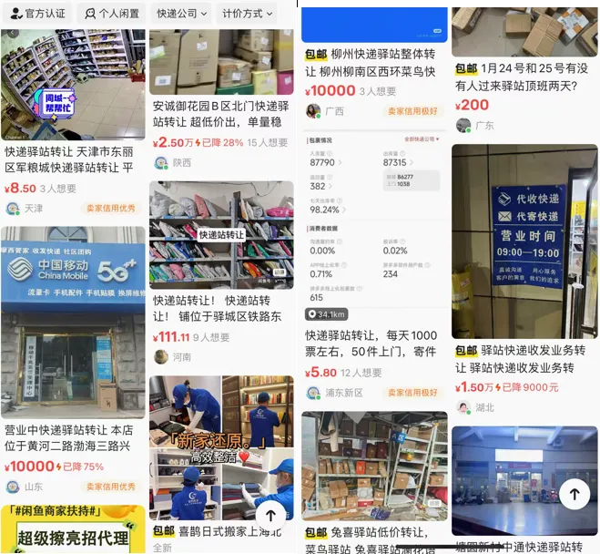 而这些声音,是几十万快递驿站经营者共同的心声……在二手平台上,检索快递驿站关键词,关于快递驿站转让直接冲上了热搜。