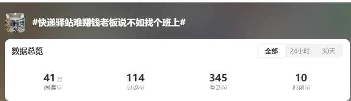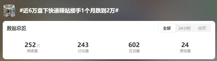 比如前不久的一个热搜话题——近6万盘下的快递驿站接手一个月跌到2万……