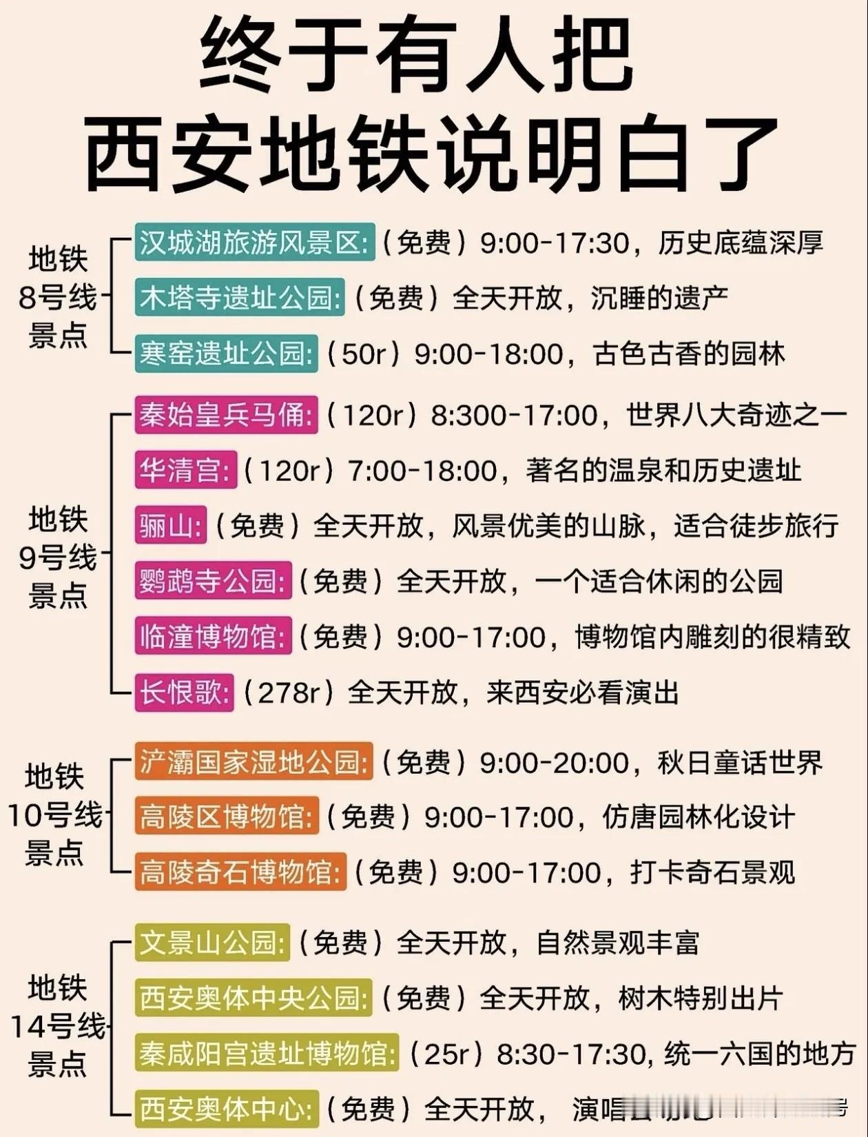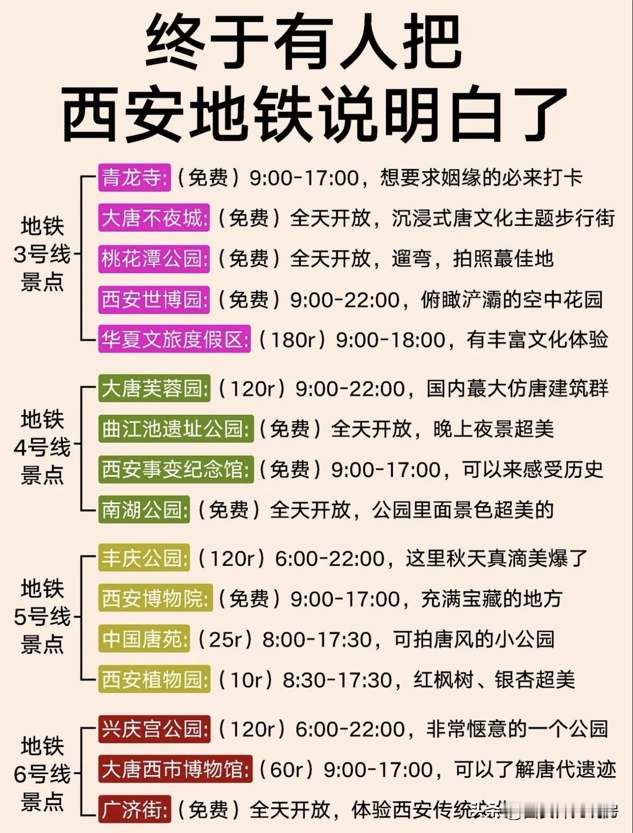 临近春节,今年的春节假期比较长,10天假期,可以想象一下,有多少人会来西安旅游,体验大唐盛世的繁荣,古时长安城,夜晚灯火璀璨,真是美不胜收,网上看到这个整理好的西安旅游攻略,乘坐地铁就能到的景点,分享给朋友们,来西安游玩不知道怎么乘坐地铁,以及没做好攻略的朋友们,可以收藏起来备用!2026马年春节即将到来,欢迎五湖四海,以及海内外的朋友们来西安旅游!welcome to Xi’an,千年古都,常来常往!西安旅游 古都西安旅游 古城西安旅游 西安过年必打卡 西安旅游攻略 西安欢迎你 @西安文旅
