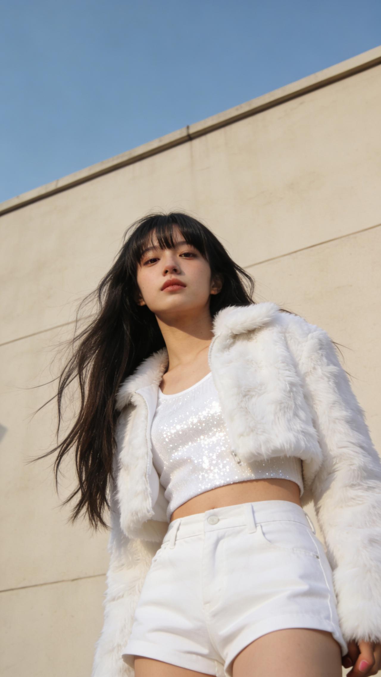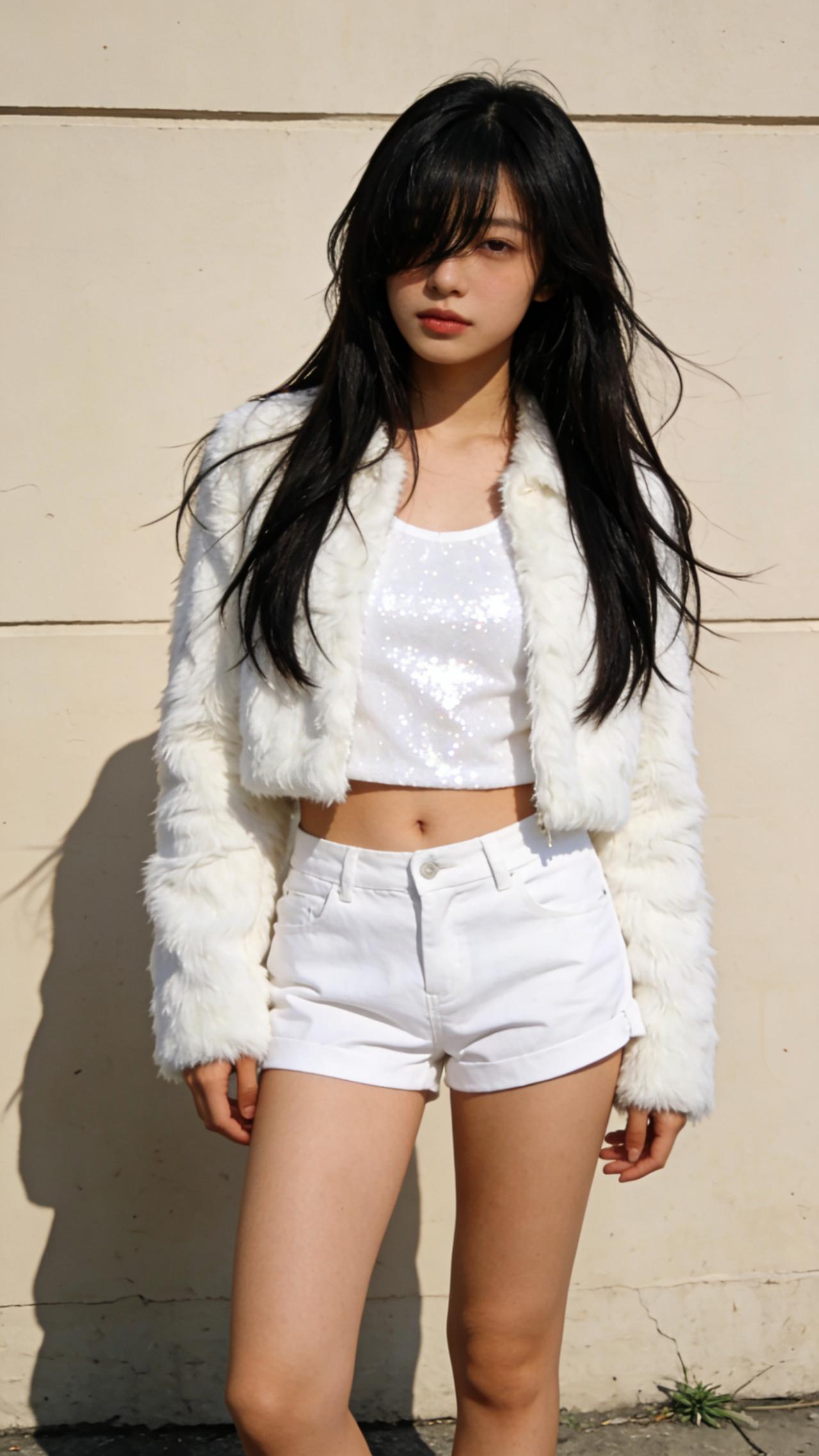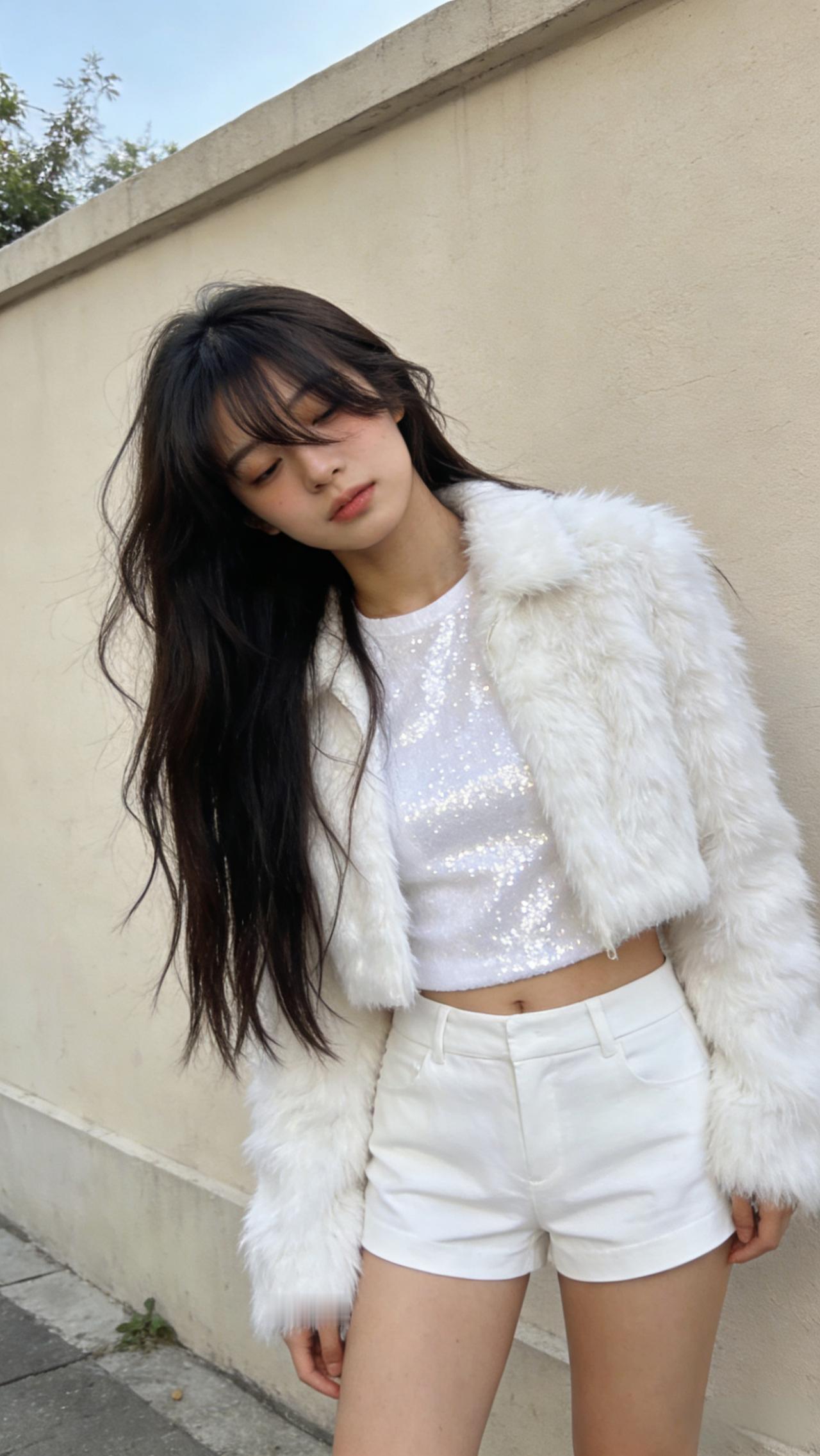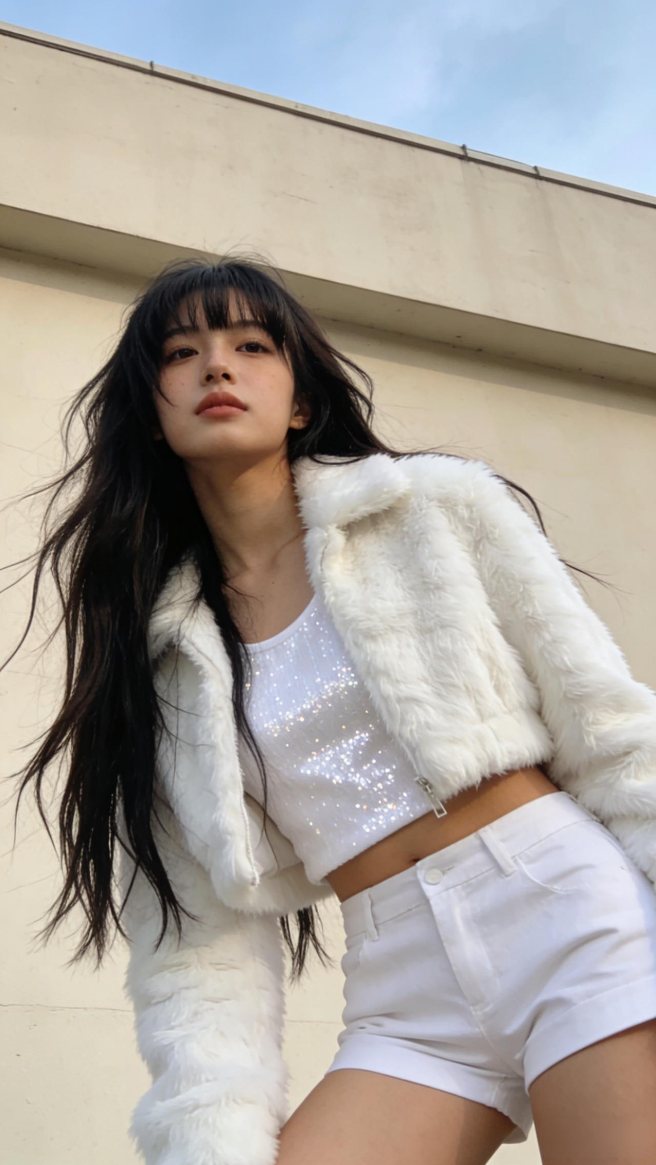 甜美少女风,毛绒外套搭配闪亮上衣,夏日清新穿搭!🌞👗💖时尚穿搭 美女
