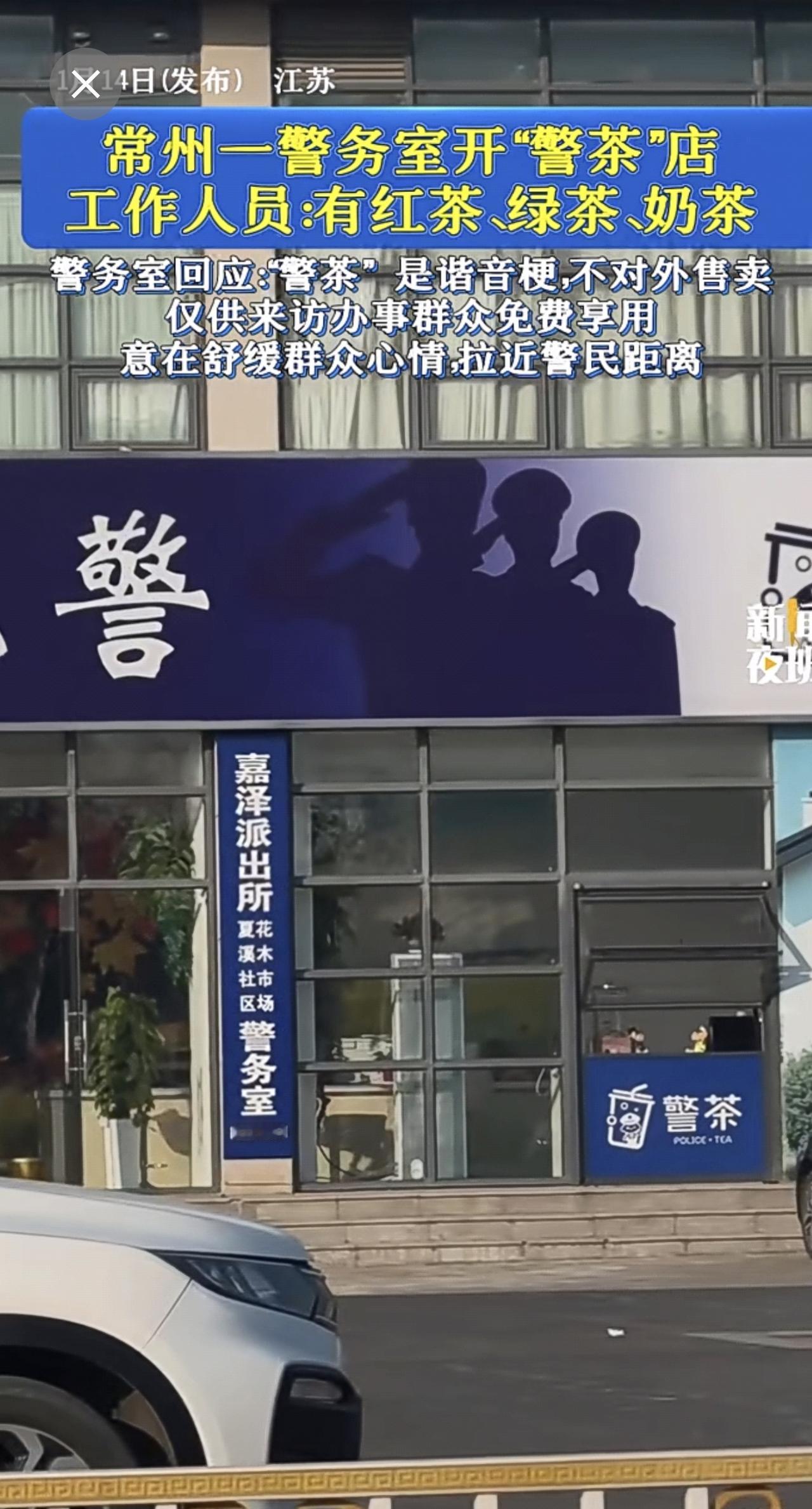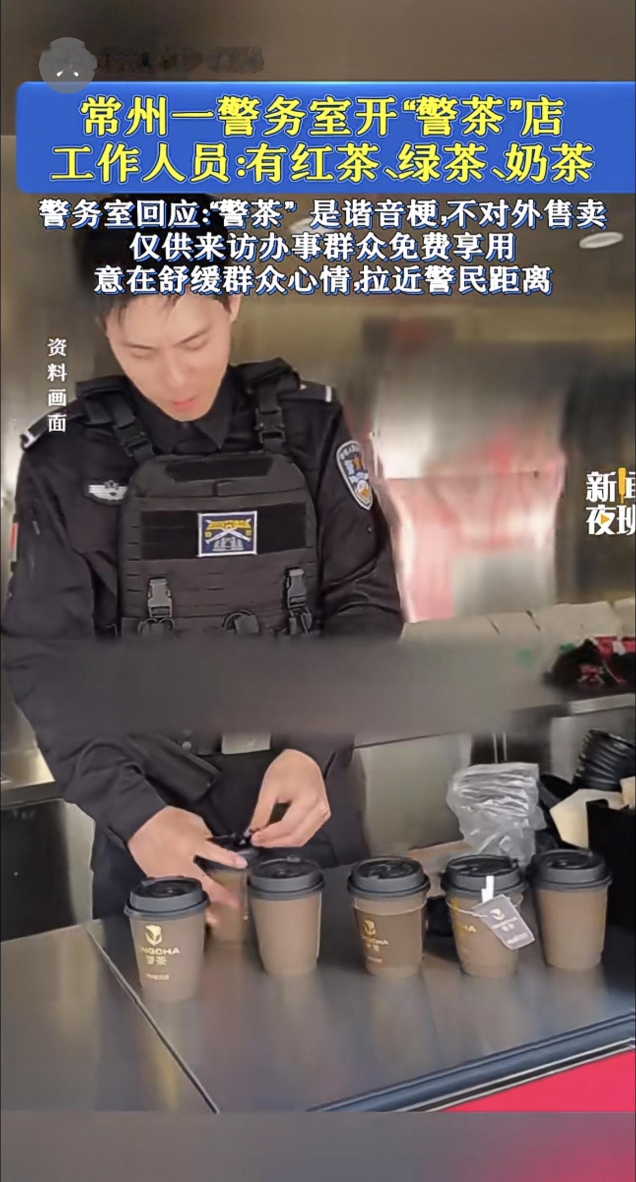 常州一警务室开“警茶”店,警务室回应:“警茶” 是谐音梗,不对外售卖,仅供来访办事群众免费享用。玩梗 奶茶警茶