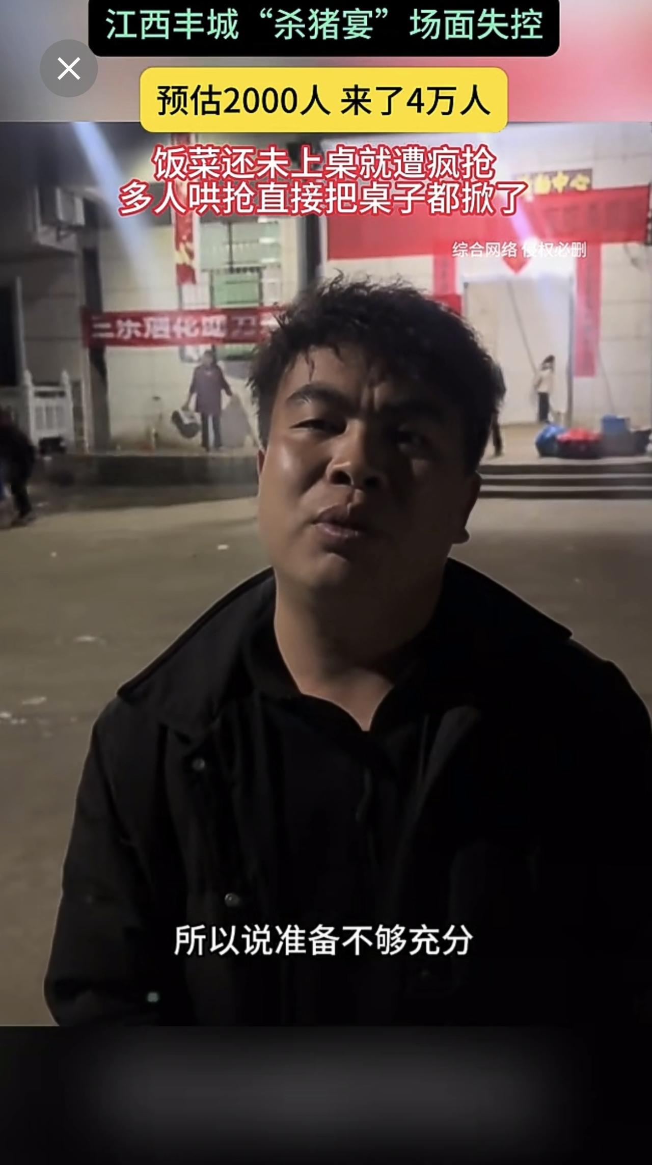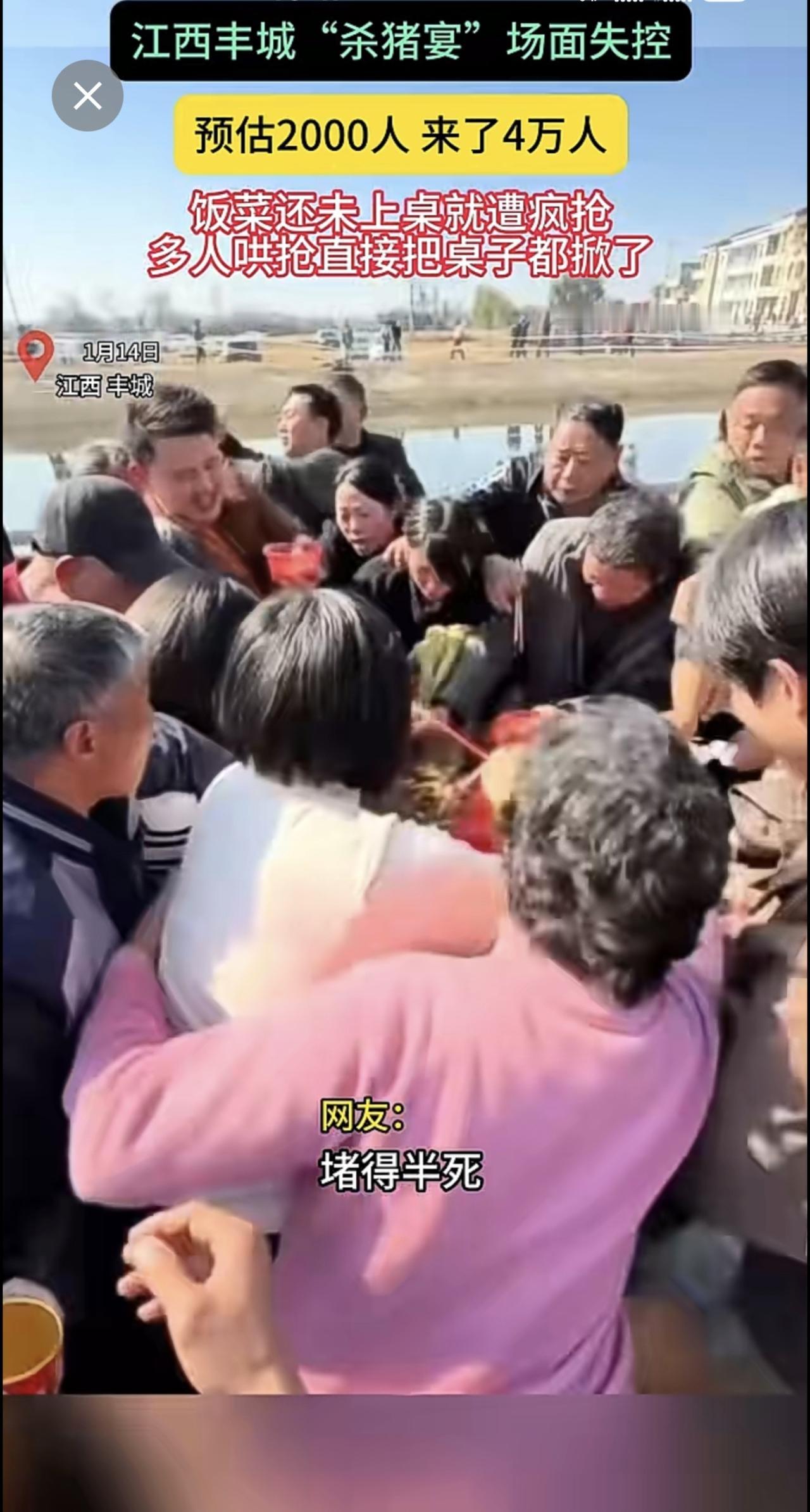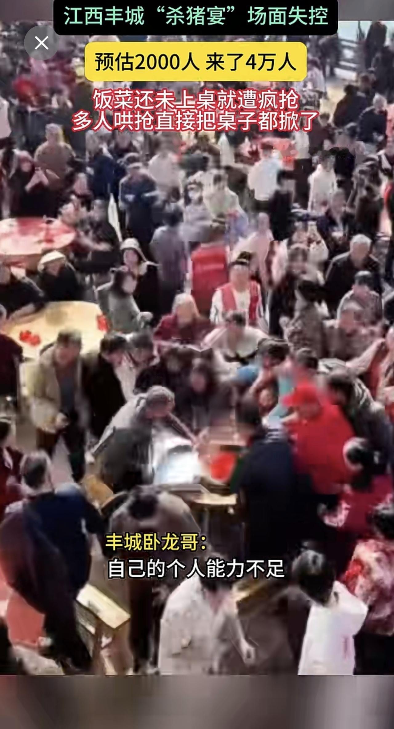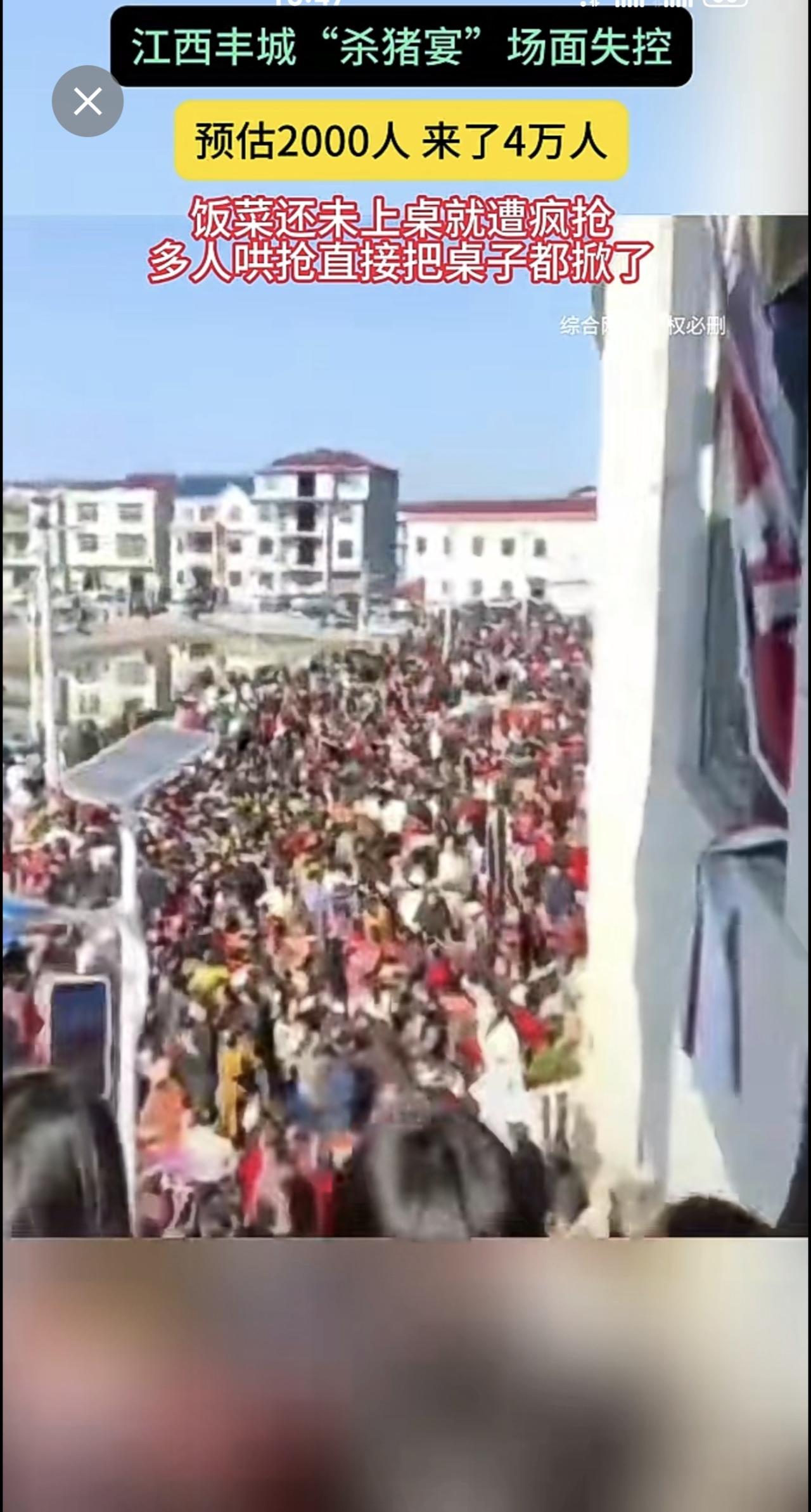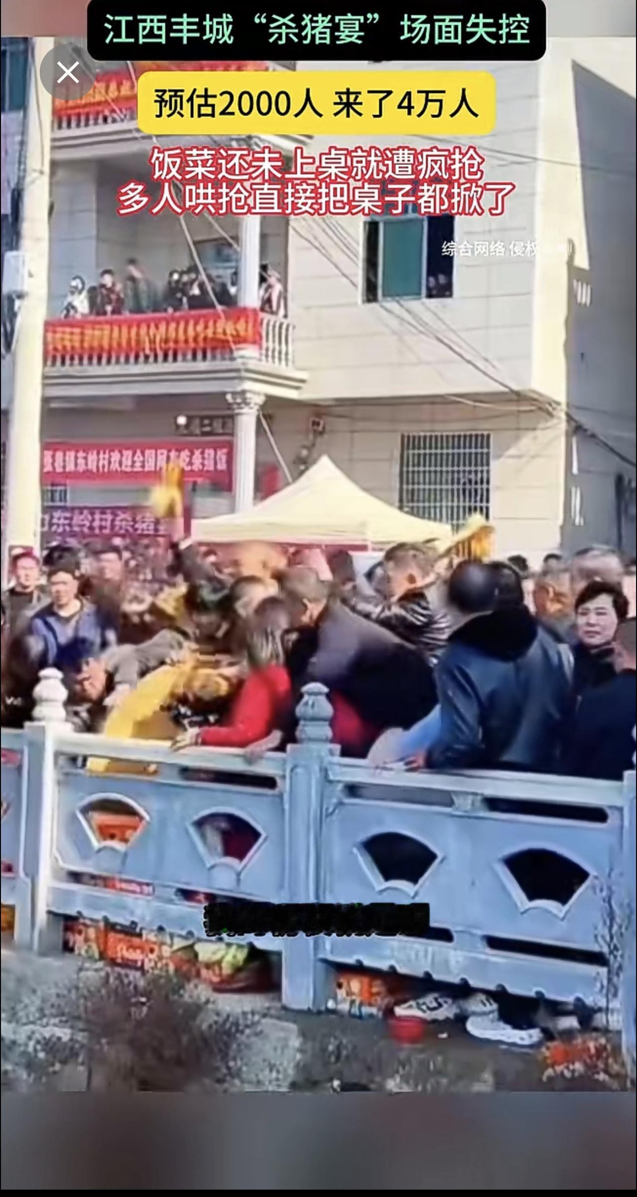 江西丰城"杀猪宴"场面失控 预估2000人 来了4万人 饭菜还未上桌就遭疯抢多人