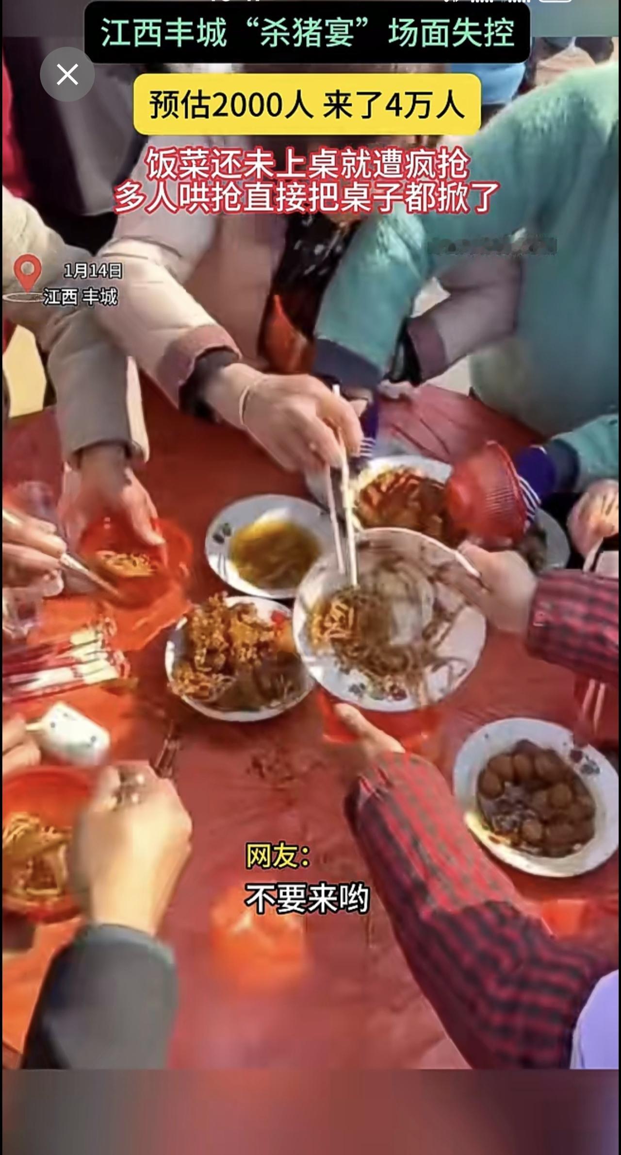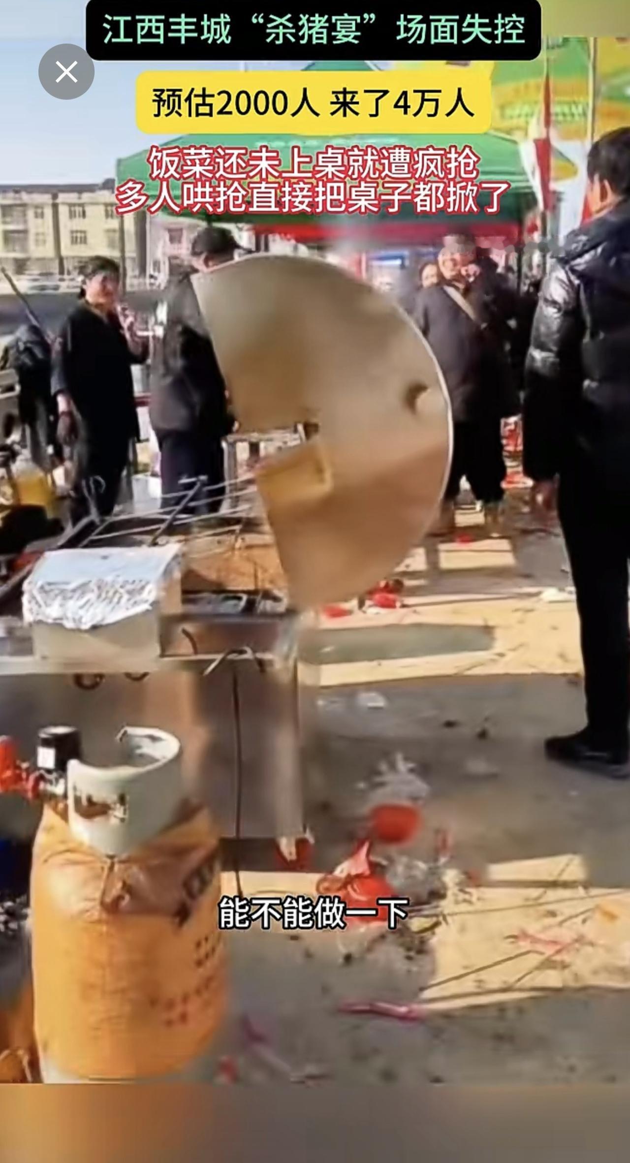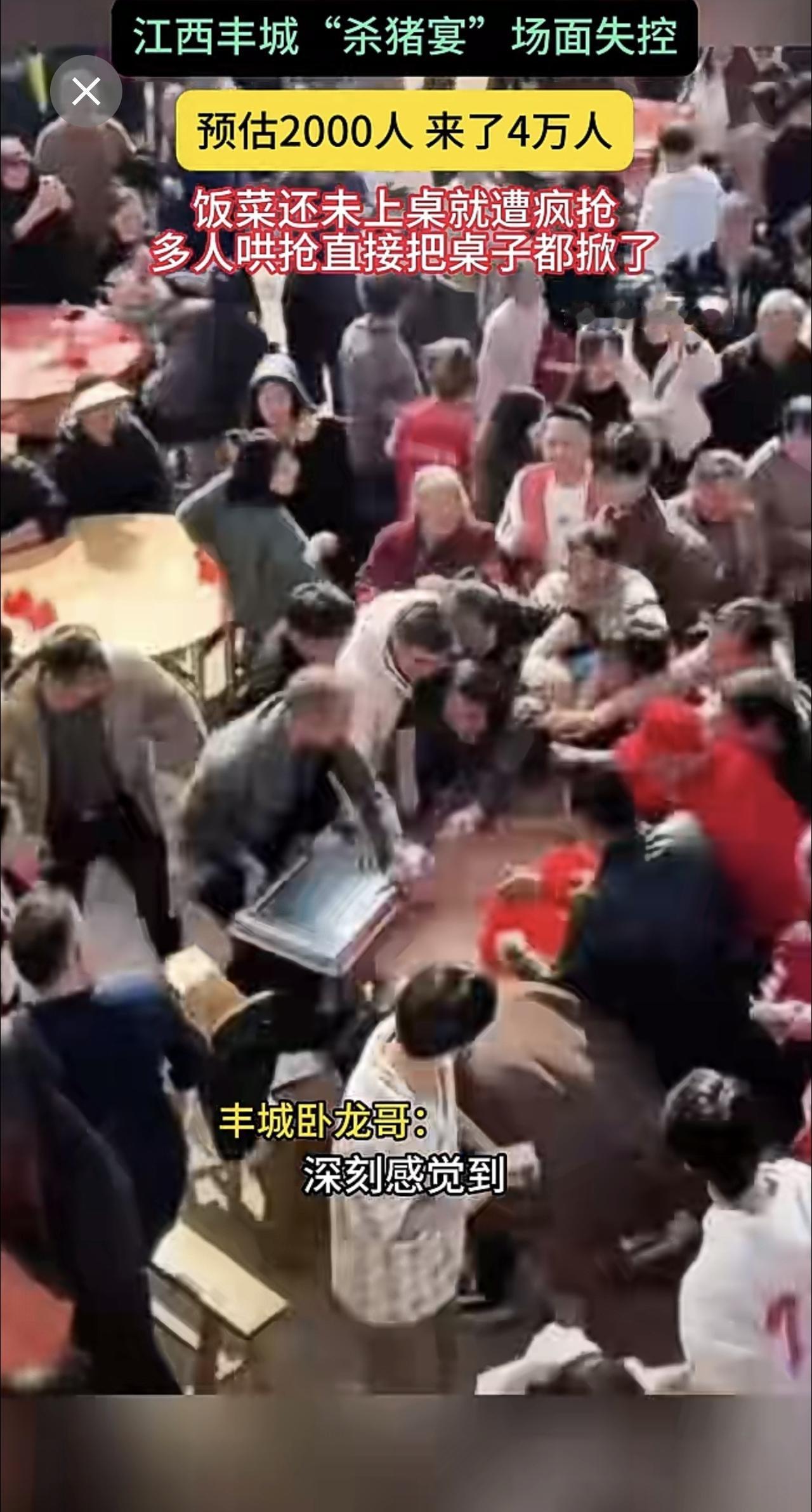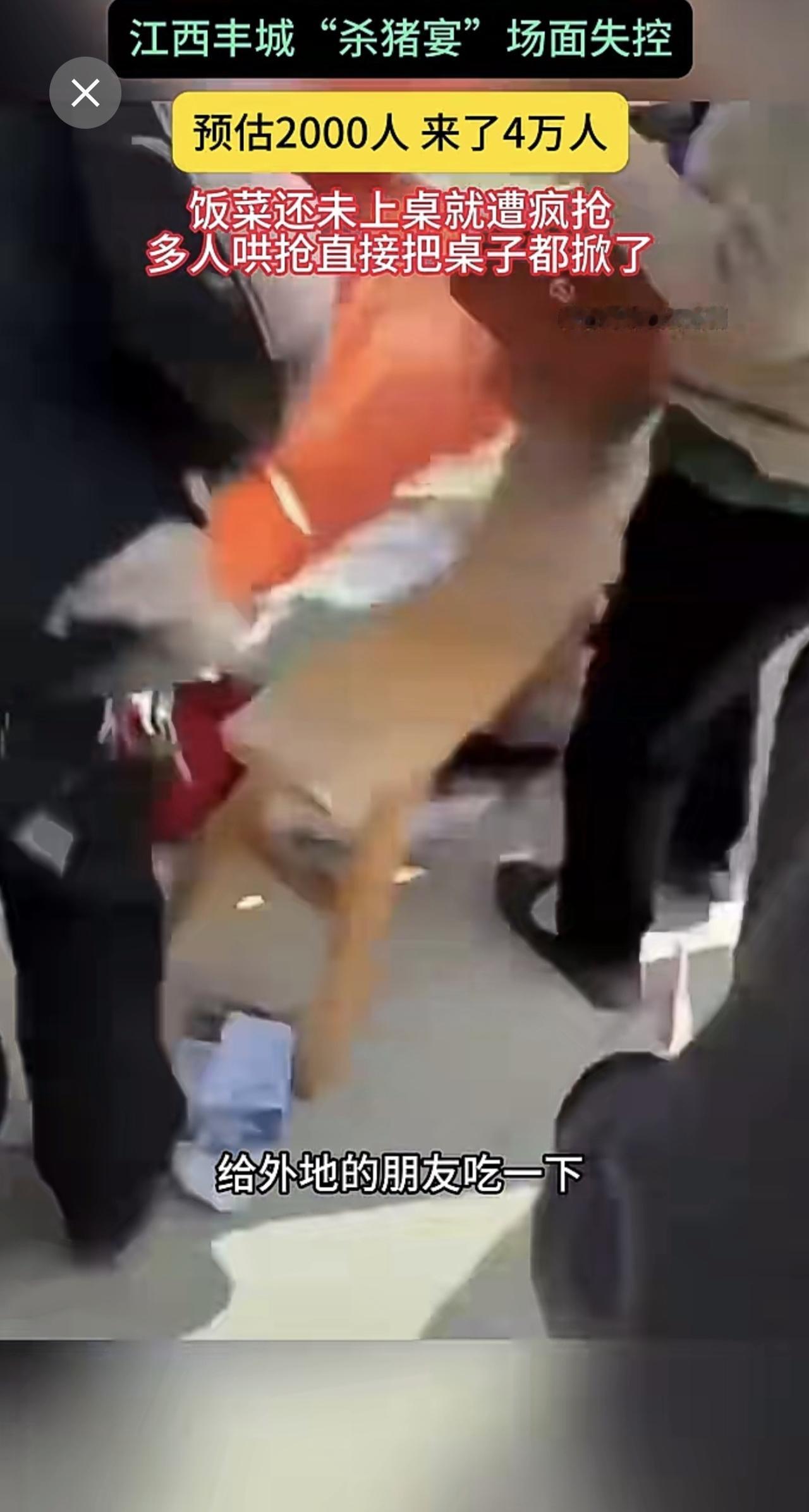 江西丰城"杀猪宴"场面失控 预估2000人 来了4万人 饭菜还未上桌就遭疯抢多人哄抢直接把桌子都掀了