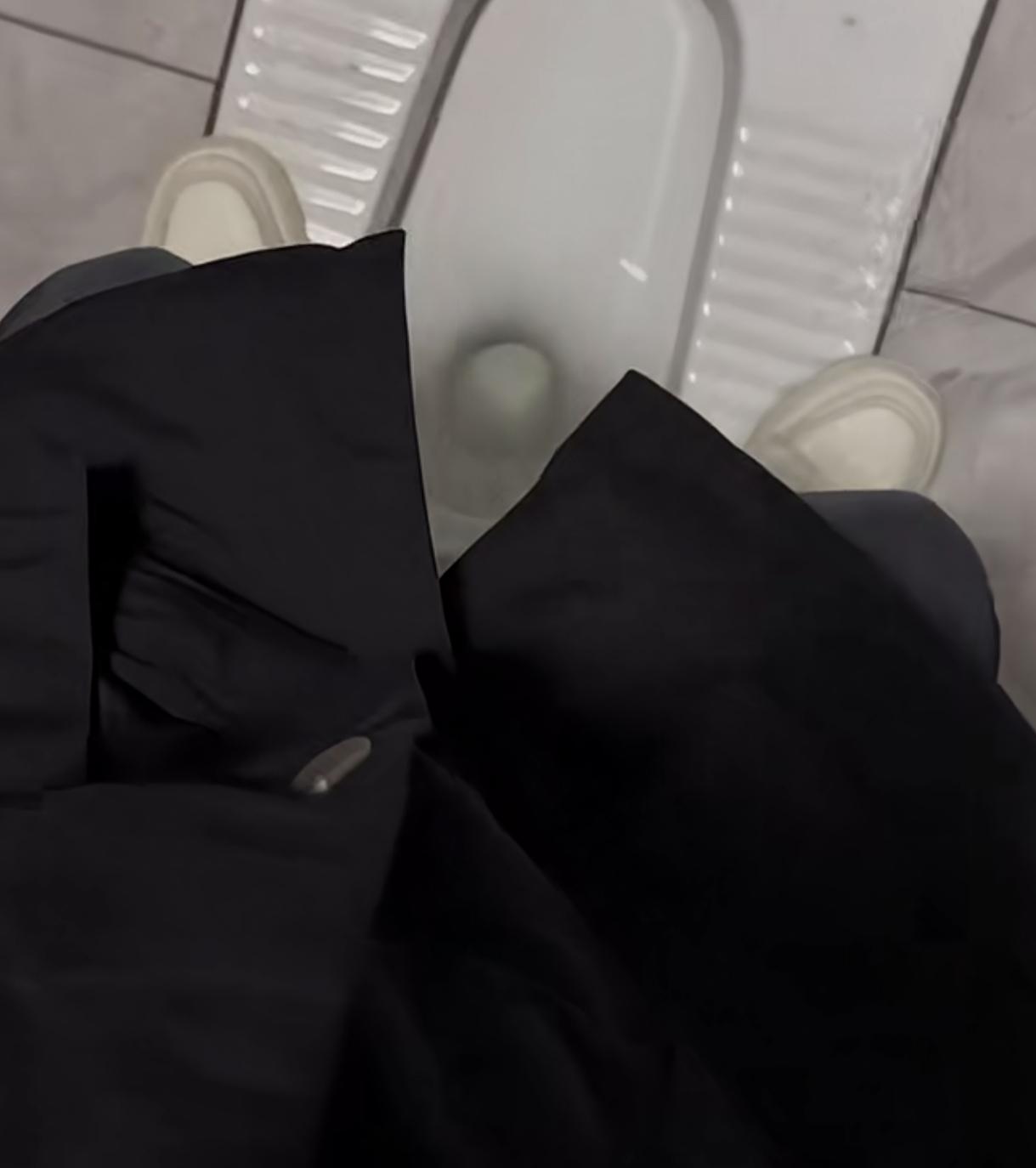 上完厕所发现 坑里竟然没有屎 原来是被新买的长款羽绒服给兜住了,兄弟讲究人,拉屎