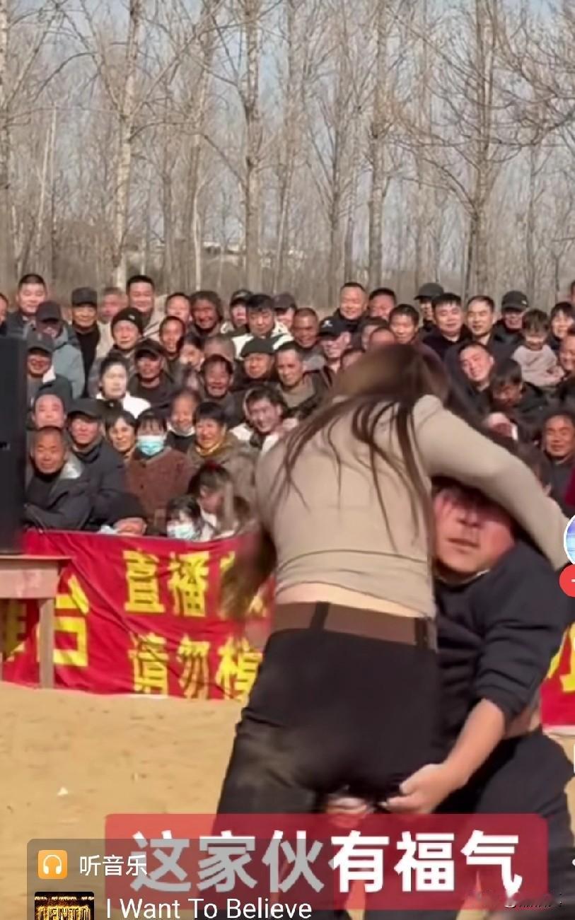 有些美女和大郎摔跤,看架势和各方条件本来可以赢的,但只要大郎拿出抱大腿绝招,对手