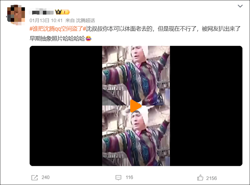 据悉,沈腾因早期照片过于抽象搞怪而被网友质疑其QQ空间被盗,戏称“沈叔叔你本可以体面老去的,但是现在不行了,被网友扒出来了早期抽象照片哈哈哈哈。”