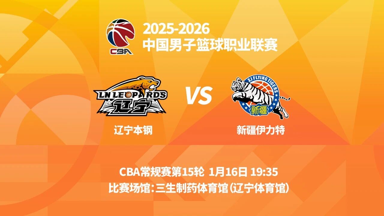 “明晚19时35分,CBA常规赛第十五轮,辽宁本钢将在主场辽宁体育馆迎战新疆伊力特。