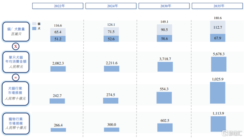 2024年中国宠物市场规模已达到3000亿元,预计2030年与2035年将分别增长至6025亿元、1.11万亿元,年均复合增长率预期分别为12.3%和13.1%。