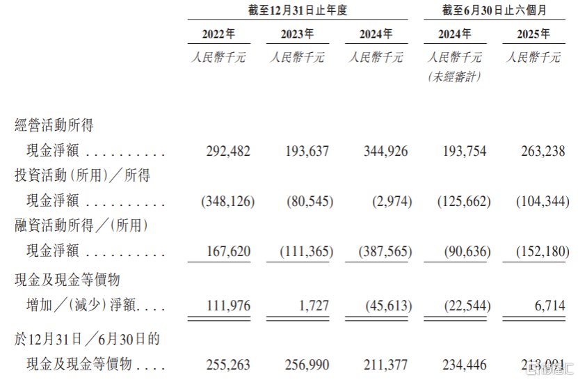 公司综合现金流量表概要,图片来源于招股书