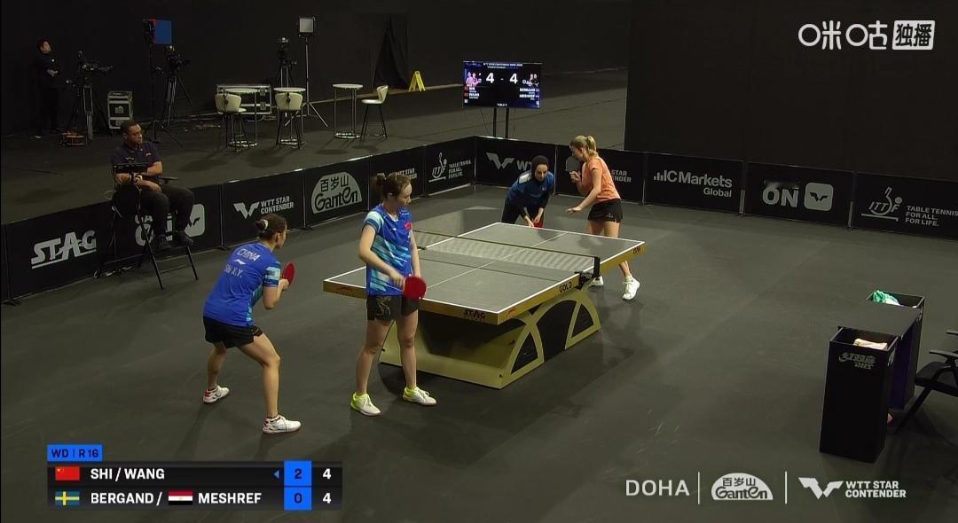 多哈球星挑战赛,国乒女双1/4决赛,迎来德比之战! 国乒石洵瑶/王晓彤3:0(11-8;11-6;11-9)横扫跨国组合梅谢英(埃及)/博嘉德(瑞典)! 热烈祝贺石洵瑶/王晓彤晋级女双八强! 但签运不佳,1/4决赛国乒内战! 石洵瑶/王晓彤Vs覃予萱/纵歌曼