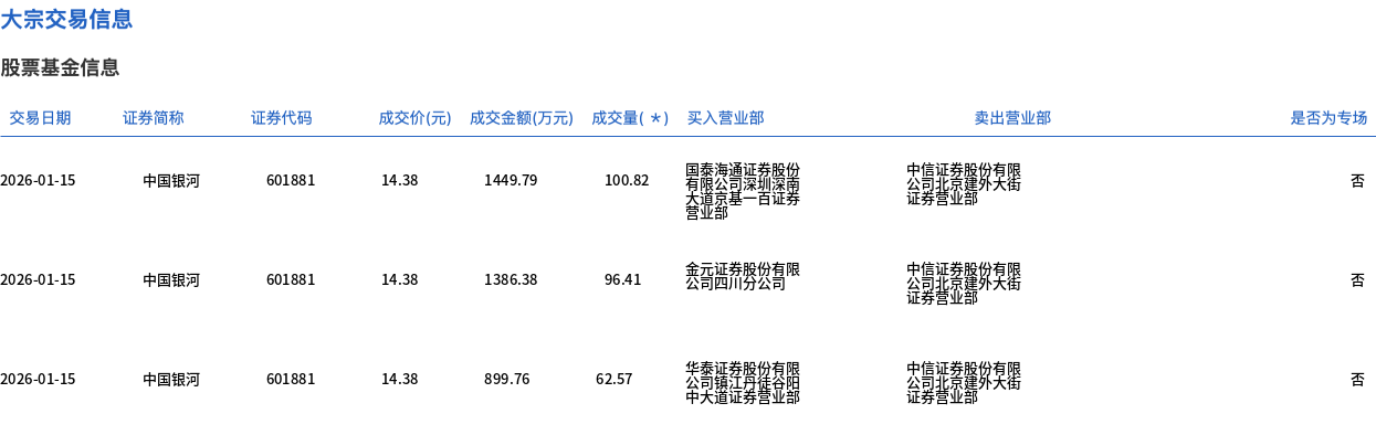 中国银河今日大宗交易折价成交259.8万股,成交额3735.93万元