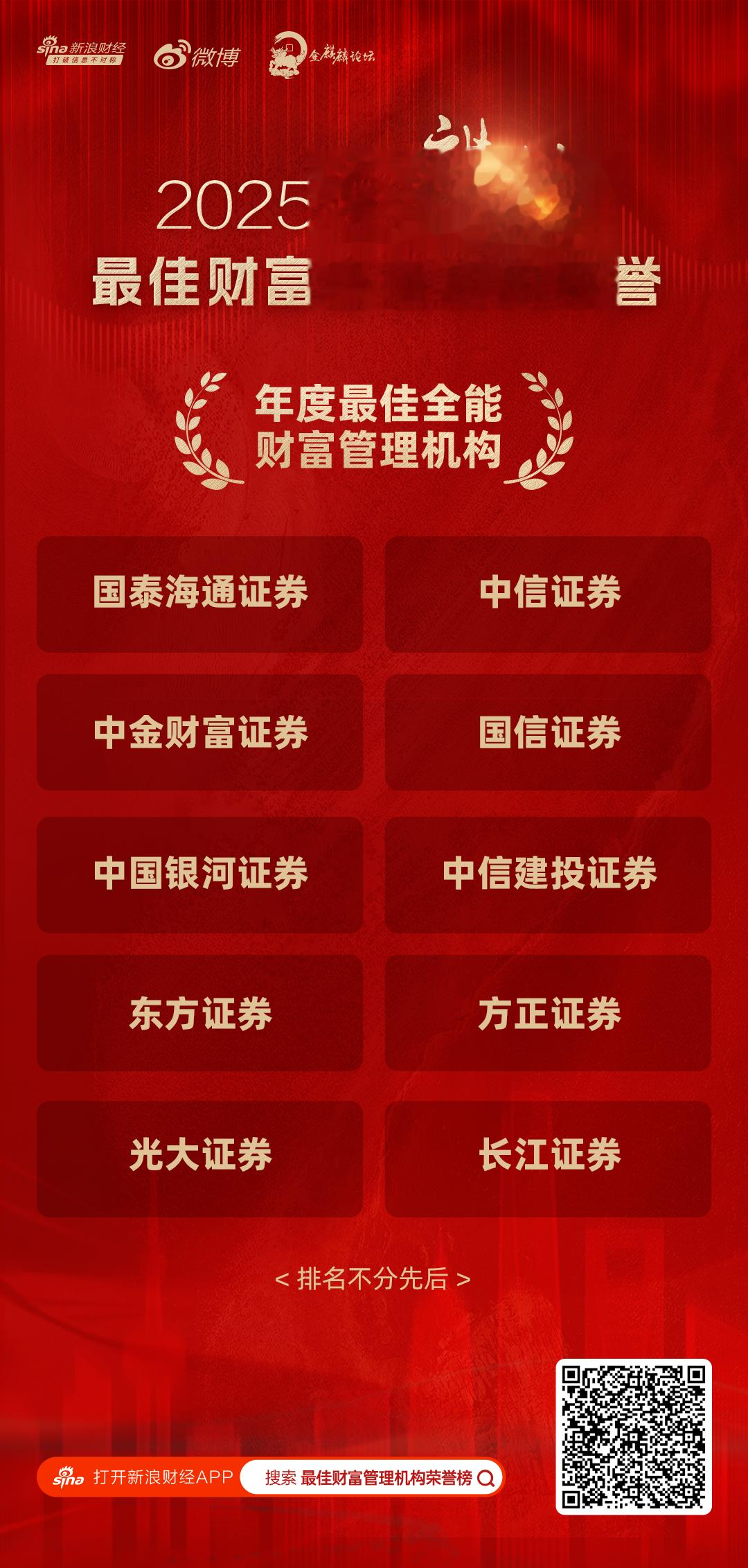新浪财经2025金麒麟·年度最佳全能财富管理机构荣誉榜如下: