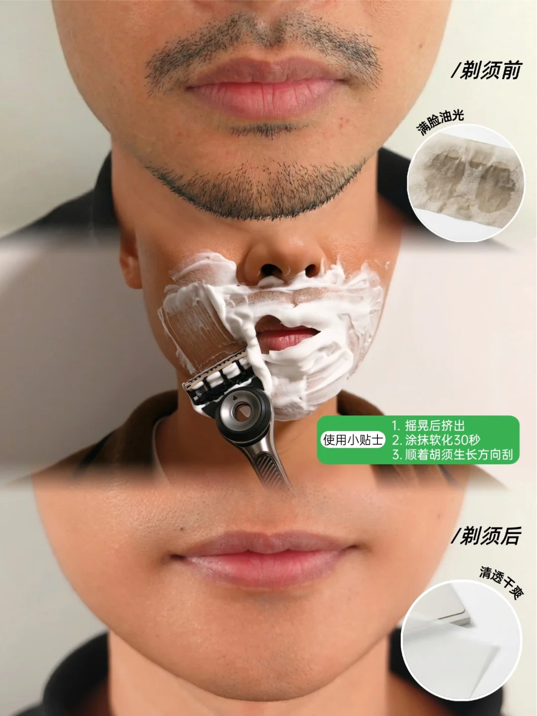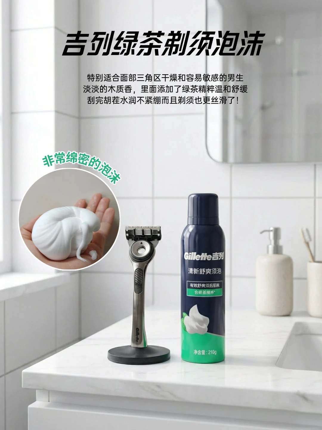 最后强调一句: 不管选哪把,记得搭配吉列绿茶须泡!软化30秒再刮,清新木质香,仪式感拉满!没用过手动的兄弟也别担心,吉列是手动的老大哥了,防刮伤设计是顶顶好不用担心的!