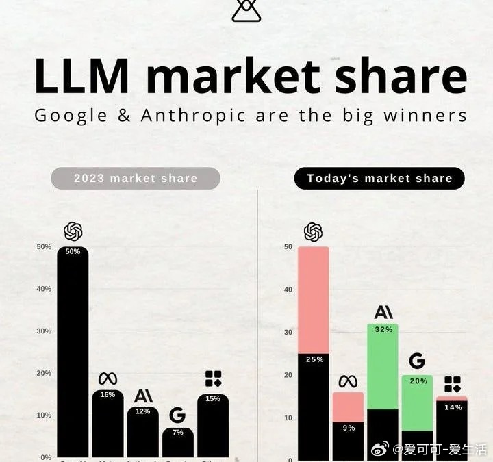 【从“被颠覆”到“最佳位置”:Google的AI逆袭是真实力还是叙事魔法?】一年前,ChatGPT横空出世,Google被认为是最大的输家。毕竟,当搜索引擎的核心价值可能被对话式AI取代时,一家靠广告吃饭的公司该何去何从?但剧情反转来得很快。Gemini 3发布、TPU持续迭代,Google似乎完成了一次教科书级的逆袭。现在的主流叙事变成了:Google才是AI时代准备最充分的玩家。不过,“叙事”这个词本身就值得玩味。叙事和现实之间,往往隔着一道鸿沟。有意思的是,当我们拆解Google的底牌时,会发现一个被低估的事实:Google从未真正落后。Transformer架构本就出自Google之手,DeepMind的积累更是深不可测。很多人把聊天机器人等同于AI,却忽略了冰山下的庞然大物。更关键的是数据护城河。Google坐拥Gmail、YouTube、搜索引擎这些数据金矿。OpenAI需要四处购买数据源,而Google只需要打开自家的仓库。有钱、有数据、有硬件,缺的只是时间。TPU的战略价值也常被忽视。它带来的不只是算力,更是利润率。Google刚与Apple签下Gemini授权协议,10亿美元的授权费只是开胃菜,真正的大餐是后续不断增长的推理账单。当用户开始说“嘿Siri,帮我把这张照片里的路人P掉”时,云端账单会变得相当可观。当然,争议同样存在。不少用户反馈ChatGPT在实际使用中仍然更顺手,Gemini的记忆能力也常被诟病。还有人指出,图表显示Anthropic的市场份额增长最快,“最佳LLM”的说法站不住脚。或许更值得思考的是:我们是否应该为一家巨头的胜出而欢呼?当AI的未来被少数几家公司把持,这对整个生态意味着什么?有一点倒是确定的:900亿美元的年利润,能买到很多耐心和试错空间。在这场马拉松里,起跑快的未必笑到最后,而口袋深的往往能熬过所有对手。www.reddit.com/r/artificial/comments/1qcfcmgoogle_went_from_being_disrupted_by_chatgpt_to