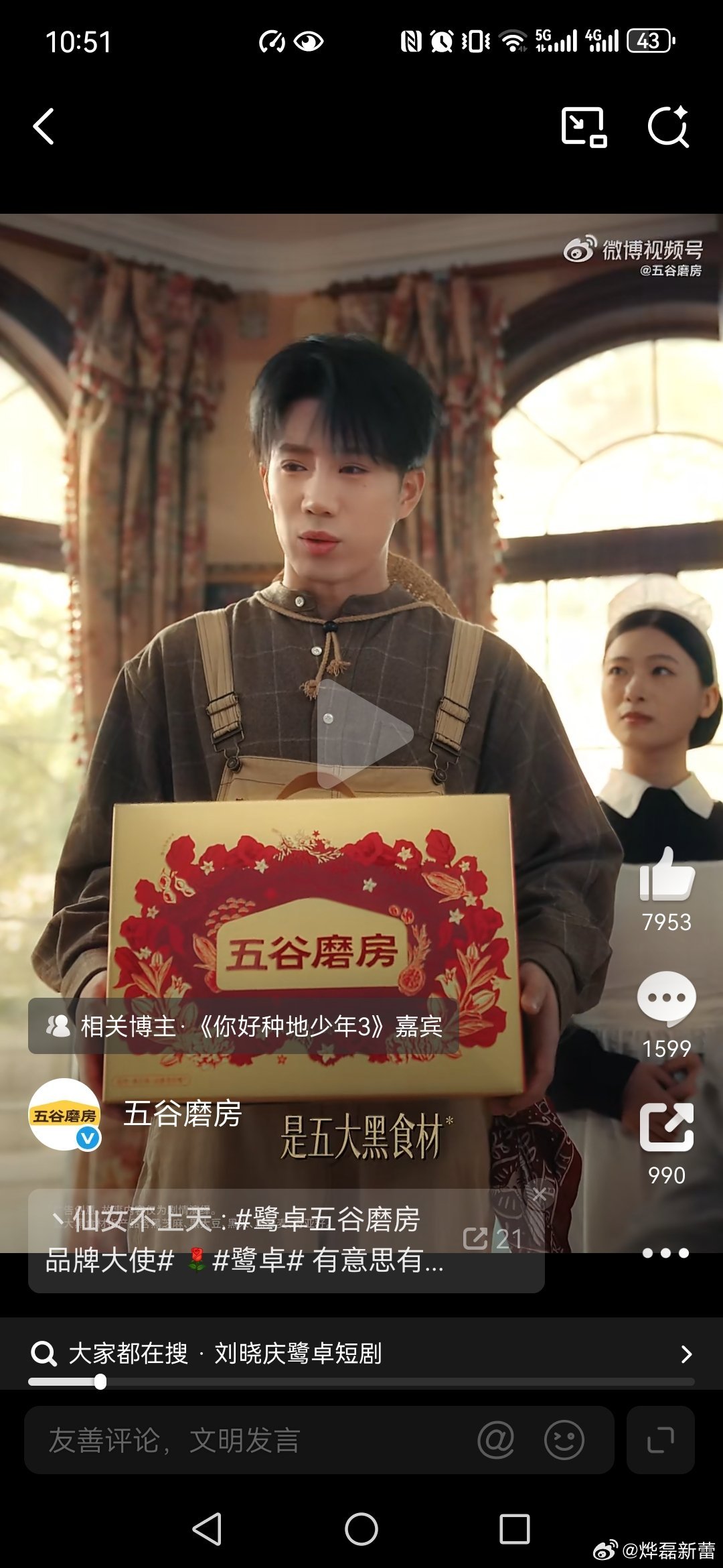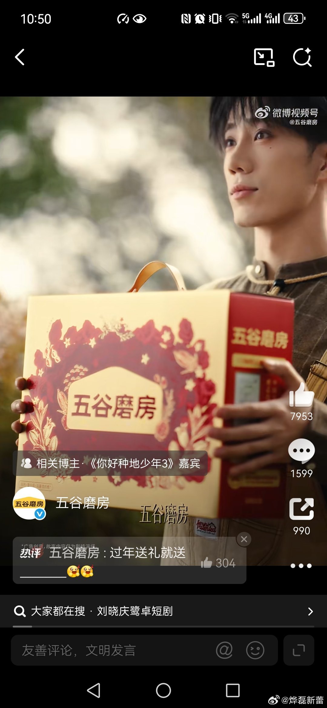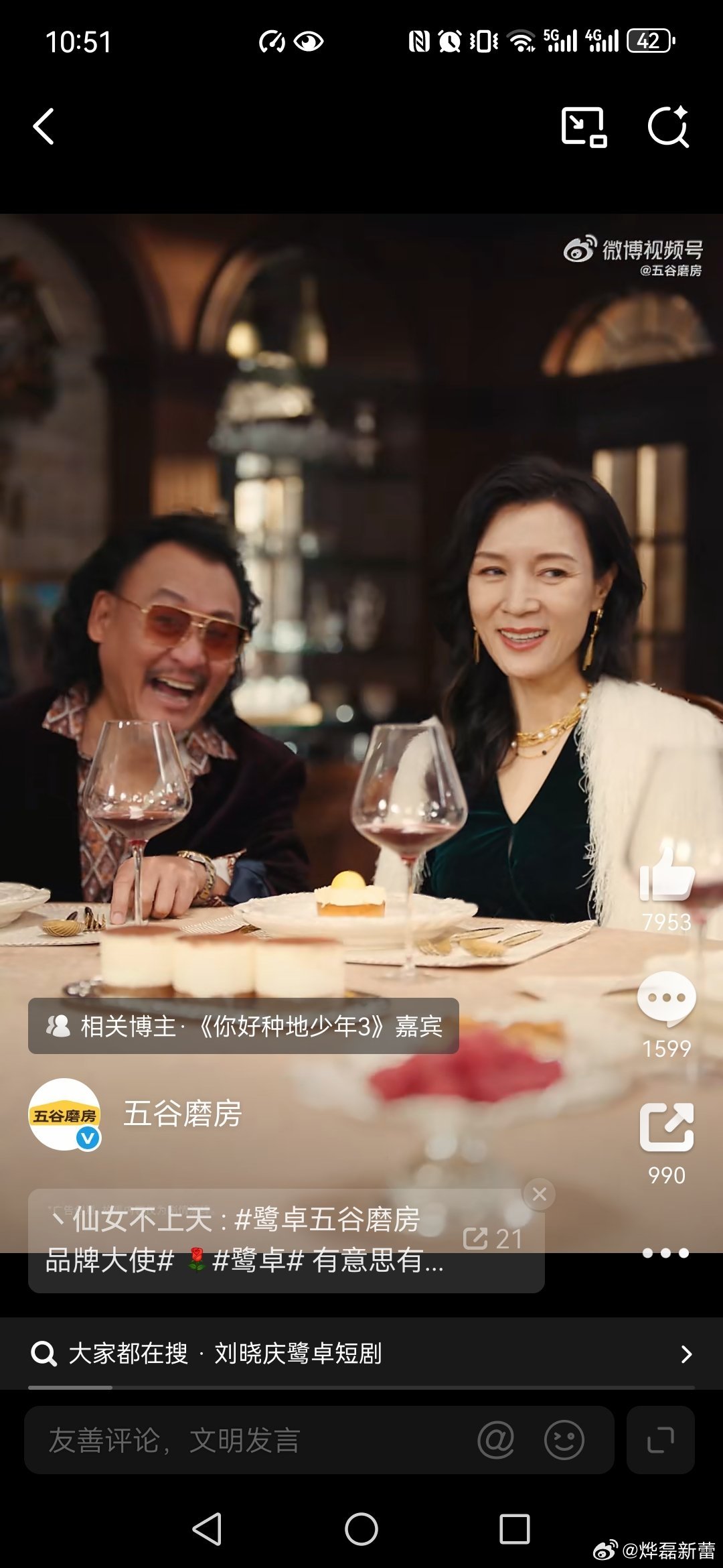 五谷磨房刘晓庆鹭卓上演五谷磨房豪门商战 观看了视频,恭喜鹭卓成为五谷磨房品牌大使,刘晓庆也推荐五谷磨房,因此我呼吁大家春节走亲访友就送五谷磨房,营养价值高,高钙高纤高蛋白,配料干净低GI,无添加、非转基因原料,因此送长辈送五谷磨房就是把健康送给了大家,也祝大家新的一年吃出健康、吃出福气,马年吉祥,一切平安。