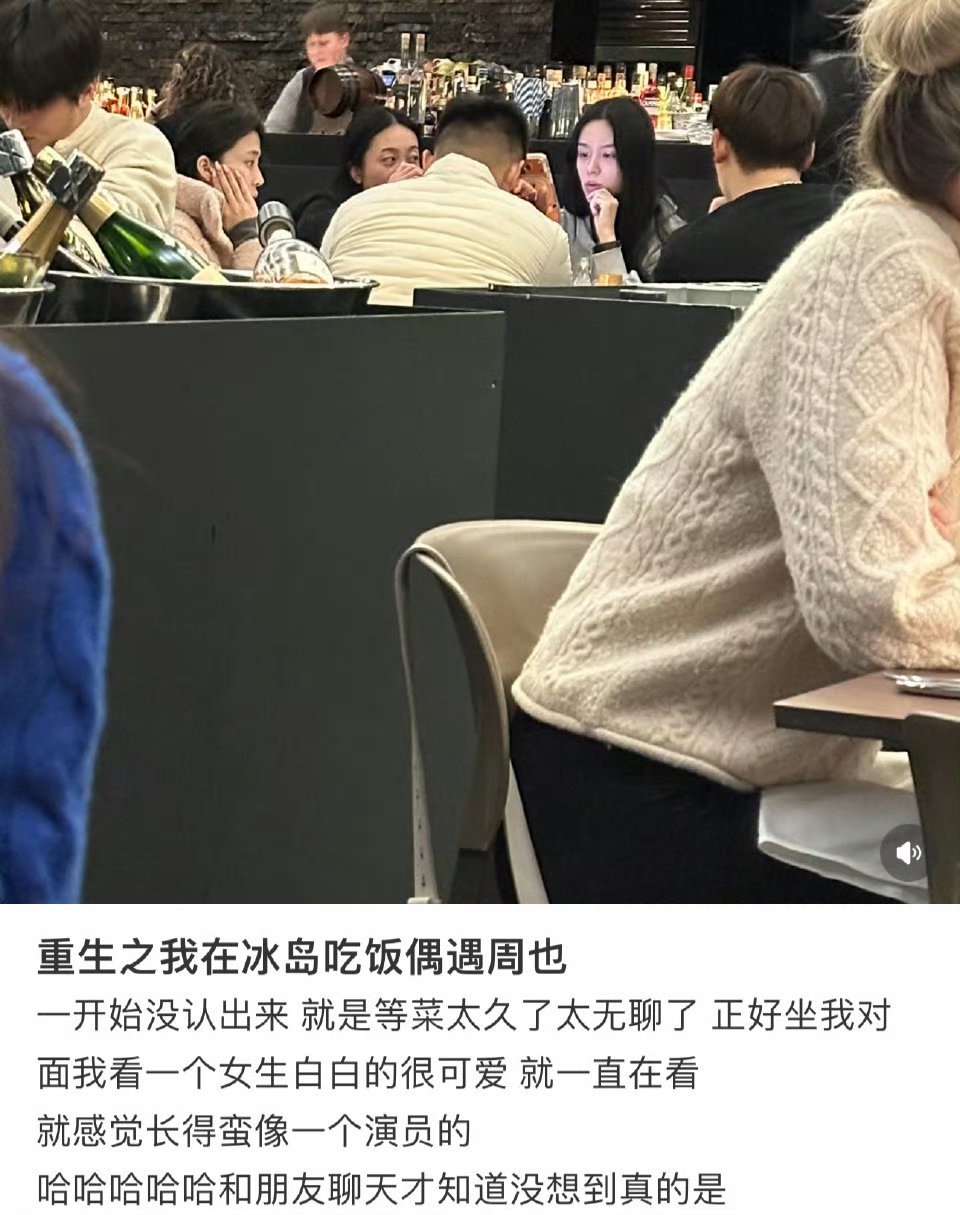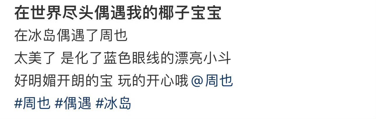 冰岛偶遇周也好漂亮啊!脸真的特别小,还画了蓝色眼影