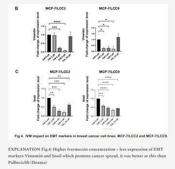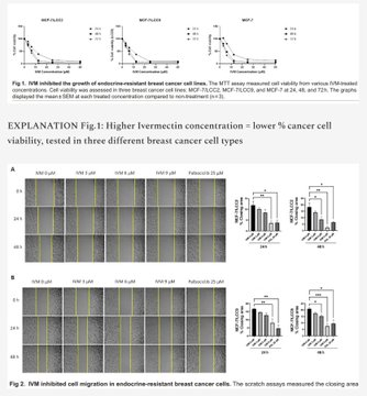 新文章:伊维菌素——伊维菌素如何抑制乳腺癌扩散?2025年泰国论文,作者:Rujimongkon等人。亮点:本文探讨了伊维菌素是否可以“重新利用”,作为对抗某些难治性乳腺癌的潜在辅助药物。研究人员在实验室培养的乳腺癌细胞上测试了伊维菌素,特别是那些不再对激素疗法(如他莫昔芬或氟维司群)产生反应的细胞类型。主要发现:伊维菌素能减缓癌细胞的生长:它能阻止这些耐药癌细胞快速增殖。有效剂量处于合理范围内(微摩尔级,与其他实验室研究结果相似),且对耐药细胞和普通乳腺癌细胞的疗效相当。正常(非癌变)乳腺细胞受到的影响较小,表明该药物对癌细胞具有选择性。它或许有助于克服耐药性:当与他莫昔芬(一种标准激素疗法)联合使用时,较低剂量的他莫昔芬仍然有效,这表明伊维菌素可能使耐药性癌症再次变得敏感。它能降低癌症扩散的可能性:当癌细胞变得更具移动性和侵袭性时,癌症就会扩散(转移)。实验室测试表明,伊维菌素能够抑制癌细胞的迁移和侵袭能力。它部分是通过逆转“上皮-间质转化”(EMT)来实现这一目标的——EMT 是一种癌细胞变得更具侵袭性和更容易扩散的过程。具体来说,伊维菌素降低了波形蛋白和蜗牛蛋白(促进扩散)等蛋白质的水平,并可能有助于恢复 E-钙黏蛋白(使细胞粘在一起)。本文重点研究了 Wnt 信号通路,该通路在乳腺癌中经常过度活跃,并驱动癌细胞的生长和扩散。伊维菌素减少了某些 Wnt“信号”(如 Wnt5a/b 配体)和一种受体(LRP6),从而减少了 EMT,并可能减缓了疾病进展。在耐药细胞中,这种效应更为显著。研究人员将伊维菌素与一种用于治疗类似耐药性乳腺癌的已批准药物帕博西尼(Ibrance)进行了比较,发现伊维菌素在阻止某些与扩散相关的变化方面更有效。结论:这些实验室结果表明,伊维菌素对激素治疗耐药的乳腺癌细胞具有良好的抗生长和抗扩散作用,可能是通过干扰 Wnt 通路和 EMT 实现的。我的看法……我经常被问到——伊维菌素是一种抗寄生虫药物,它怎么可能治疗癌症呢?答案是:伊维菌素的作用远不止是抗寄生虫药。伊维菌素具有广泛的抗肿瘤特性!ARTICLE: IVERMECTIN - How does Ivermectin inhibit spread of Breast Cancer? 2025 Thailand paper by Rujimongkon et al.HIGHLIGHTS:This paper explores whether Ivermectin could be “repurposed” as a potential helper in fighting certain tough-to-treat breast cancers.Researchers tested Ivermectin on lab-grown breast cancer cells, specifically types that no longer respond to hormone therapies (like tamoxifen or fulvestrant). KEY FINDINGS:Ivermectin slows cancer cell growth: It stops these resistant cancer cells from multiplying as quickly. The effective doses were in a realistic range (micromolar levels, similar to what’s seen in other lab studies), and it worked about as well on resistant cells as on regular breast cancer cells. Normal (non-cancer) breast cells were less affected, suggesting selectivity for cancer cells.It may help overcome drug resistance: When combined with tamoxifen (a standard hormone therapy), lower doses of tamoxifen still worked, hinting that Ivermectin could make resistant cancers sensitive again.It reduces cancer spread potential: Cancer spreads (metastasizes) when cells become more mobile and invasive.Ivermectin blocked the cancer cells’ ability to migrate and invade in lab tests.It did this partly by reversing “epithelial-mesenchymal transition” (EMT)—a process where cancer cells become more aggressive and spread-prone.Specifically, Ivermectin lowered levels of proteins like vimentin and snail (which promote spread) and may help restore E-cadherin (which keeps cells stuck together).The paper focuses on the Wnt signaling pathway, which is often overactive in breast cancer and drives growth and spread.Ivermectin reduced certain Wnt “signals” (like Wnt5a/b ligands) and a receptor (LRP6), leading to less EMT and potentially slower progression.The effects were stronger in resistant cells.The researchers compared Ivermectin to an approved drug palbociclib (Ibrance), used for similar resistant breast cancers, and found Ivermectin was more effective at blocking some spread-related changes in their tests.CONCLUSION:These lab results suggest Ivermectin has promising anti-growth and anti-spread effects on hormone-therapy-resistant breast cancer cells, possibly by interfering with the Wnt pathway and EMT.My Take…I always get asked - how can Ivermectin possibly treat cancer if it’s an anti-parasitic?The answer is: Ivermectin is a LOT MORE than just an anti-parasitic.Ivermectin has extensive anti-neoplastic properties!