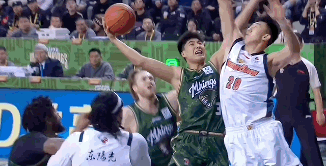南京男篮vs广东男篮 胡明轩今天开得比较早,一次反击空切,一次反击一条龙2+1,开场已经连得5分。