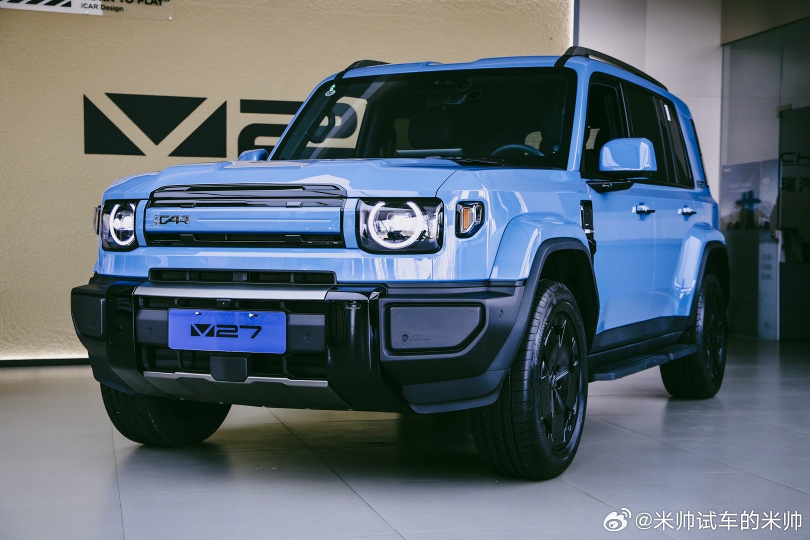 到店实拍iCAR V27,蓝色的车看起来就像是个大玩具一样,作为复古硬派大五座S