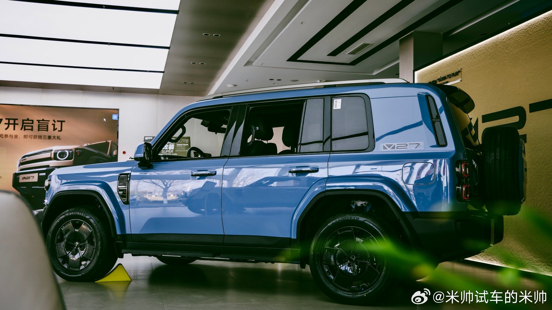 到店实拍iCAR V27,蓝色的车看起来就像是个大玩具一样,作为复古硬派大五座SUV,V27的颜值真挺耐看的,我是越看越喜欢icarv27米帅试车