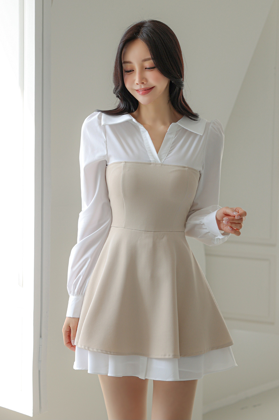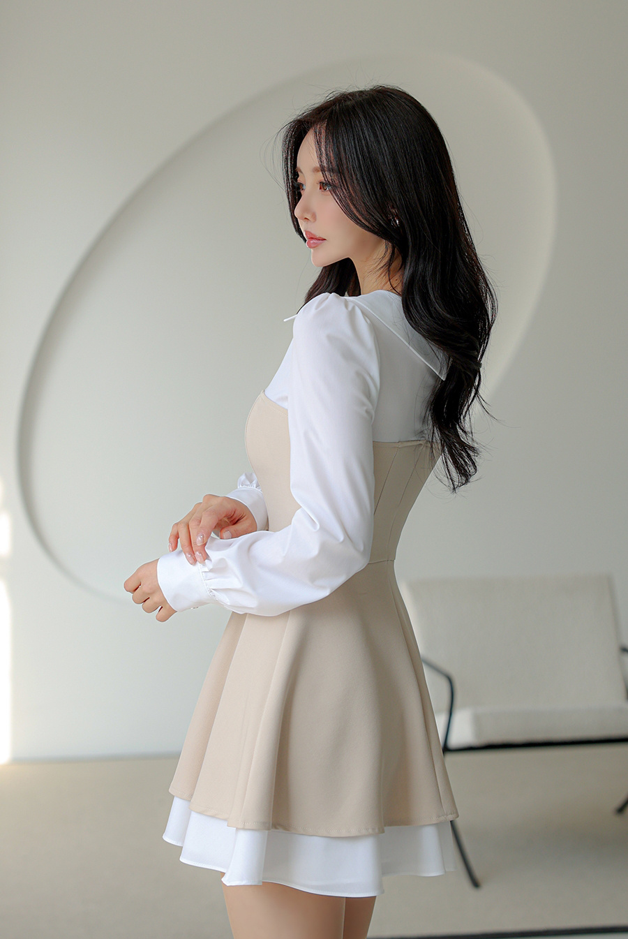 清冷温柔的孙允珠,一头柔顺的红棕色长发自然垂落,,在简约的环境中显得格外亮眼。