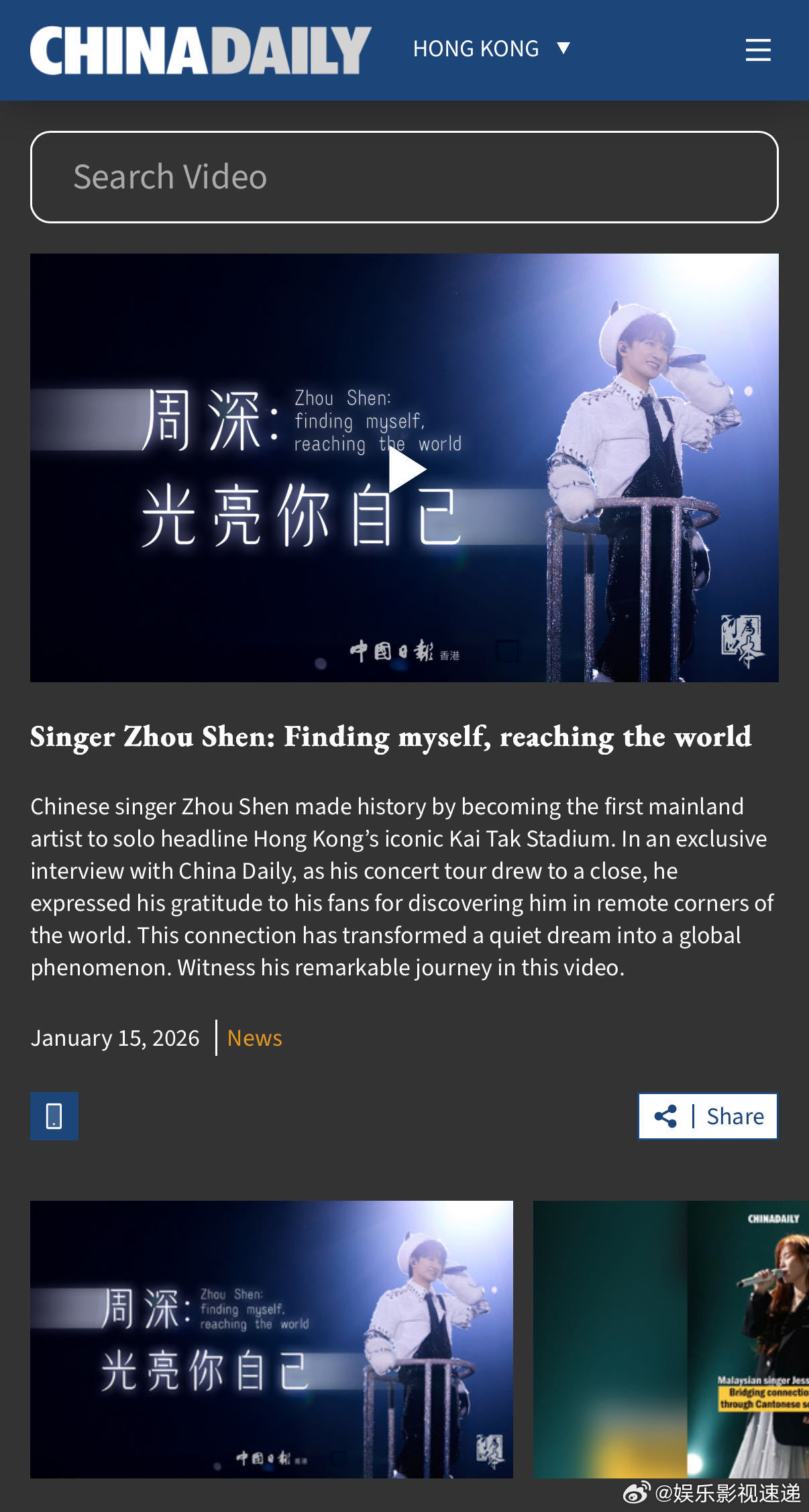 周深音乐影响力获中国日报认可周深搭建音乐桥梁 从留守儿童到国际先锋,《中国日报》