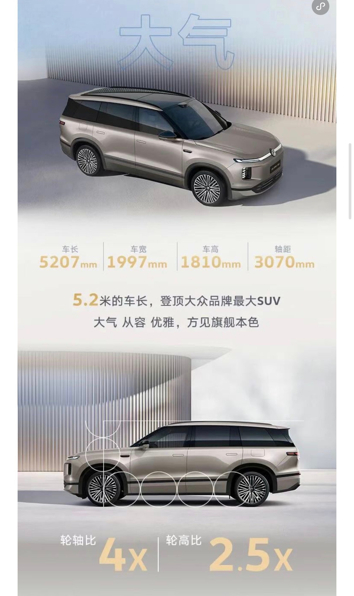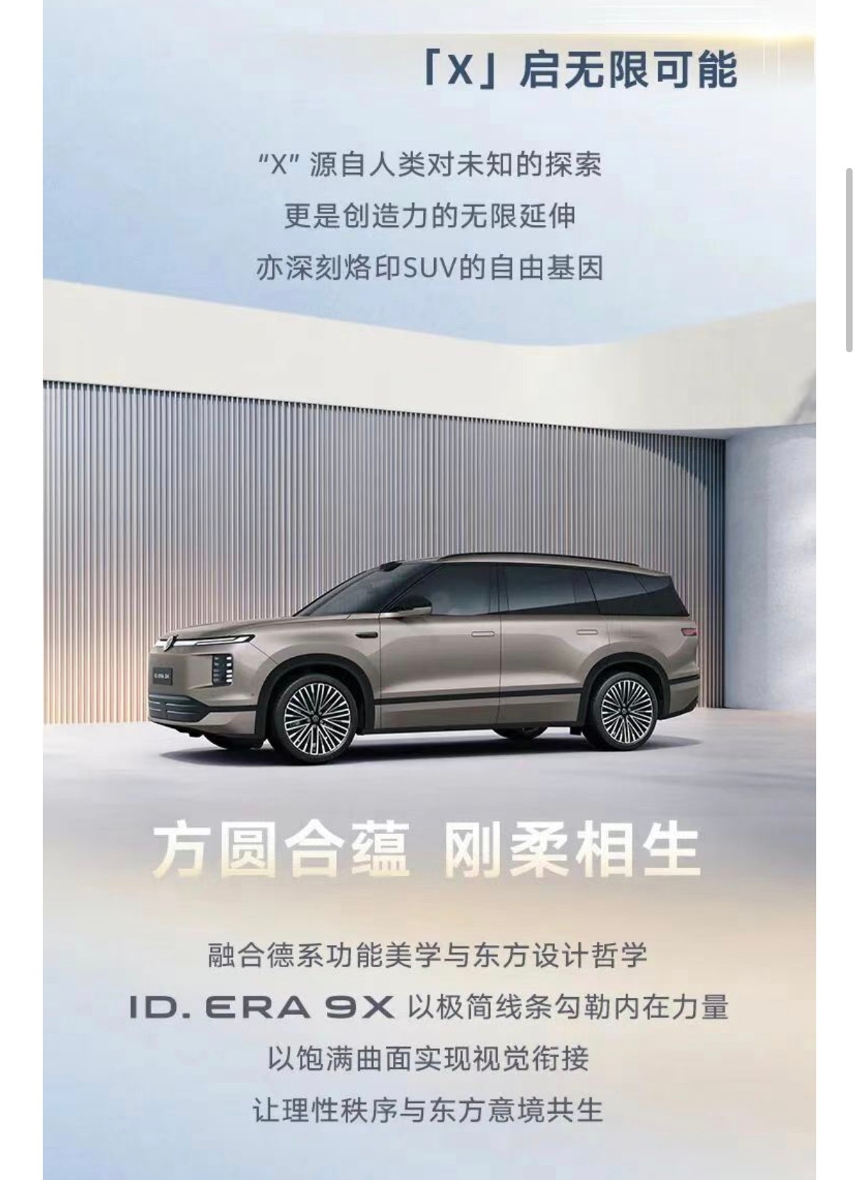 好家伙,这才应该是大众反扑的第一个重磅车吧,叫9X,名字真是被中国厂商带的入乡随俗了,上汽大众产的,EA888 2.0T增程器,应该是五代的,产品力估计不差,就看能不能放下身段和国产品牌肉搏了,不然也没戏。另外,这车一汽大众会有吗?大众id.era9系满级旗舰来了