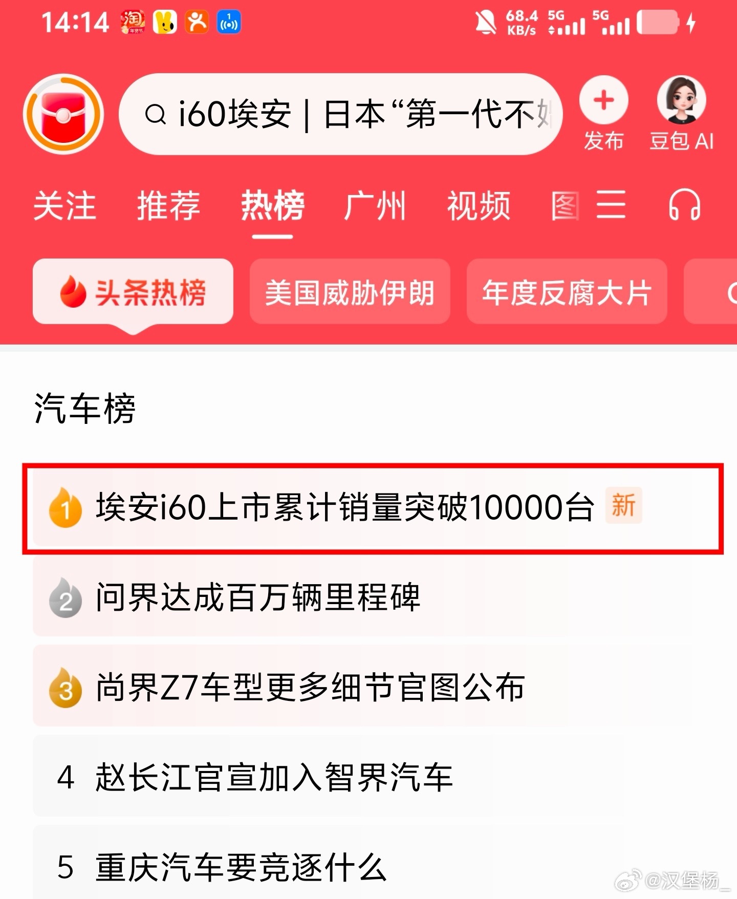 最近在路上开车发现埃安i60的身影,逐渐多了起来于是我去查了一下它的销量发现去年12月,它上市一个月就上榜了排在A级新能源SUV的销量第二而且还是紧凑型双动力SUV销冠然后最近销量也是突破一万台,登上热搜🍔埃安做SUV,还是有自己的独到之处的昂!回顾一下价格埃安i60会提供增程、纯电两种动力可选焕新价10.48w起,13.08w封顶在整个1月的政策置换报废补贴不限品牌最高有21200元金融贴息最高有5000、试驾还有机会赢足金🍔产品力其实没什么问题,增程最长续航1240km纯电则有530km以及650km可选在空间、乘坐舒适度、座舱交互辅助驾驶等多个层面埃安i60方方面面都安排了还把价格做到了13w内🍔然后其实这边,埃安的三担责也能很大程度上,消除消费者后续的一个用车之忧在电池安全、电池衰减、智能泊车辅助这三个方面都替消费者考虑到了这也是自主品牌首个推出这样的保障的给埃安点赞!这既是品牌对用户的负责更是对自己产品的十足信心🍔真的,年前想给家里换台SUV过年的可以去附近的店里去试试这台i60没有什么短板的产品力打心底里放心的政策保障以及限时的一个1月政策,有点香的!汉堡杨大v聊车热销加码_国民大五座SUV选埃安i60
