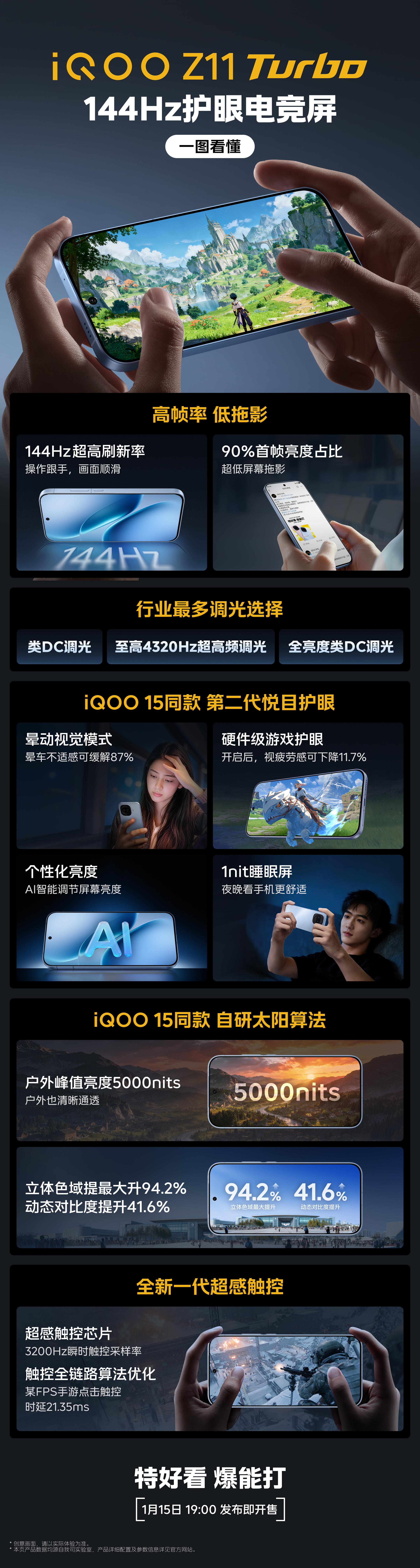 iQOOZ11Turbo手感绝了 骁龙8 gen5,UFS 4.1,LPDDR5X Ultra,2亿大底主摄,144Hz护眼电竞屏,电竞增强信号芯片,薄至7.9mm,金属中框,6.59 “ 中屏尺寸,10.4mm大R角设计,100W超快闪充......这就是iQOO交出的2026年首份答卷iQOO Z11 Turbo。配置看完看颜值,主打配色沧浪浮光,你觉得很有诗意,但它却特指游戏。官方表述:「沧浪」,是团战中冷静计算的轨迹,是逆境翻盘时心潮的澎湃;是屏幕上一瞬而逝的技能残影,也是胜利时眼中跃动的神采。是不是很意外?当然,还有光晕粉,天光白,极夜黑三个基础配色,淡雅舒适,都挺好看~iQOO说了,选择这个时候发布就是为游戏党和刷剧党准备的,超强的游戏性能和超长的电池续航为你们在寒假里的游戏和刷剧时光安排得妥妥的,手机配色也是男女通吃。我尤其喜欢那个摄像头Deco的设计,像极了卡姿兰大眼睛so!那就期待一下19:00发布会正式开启吧~