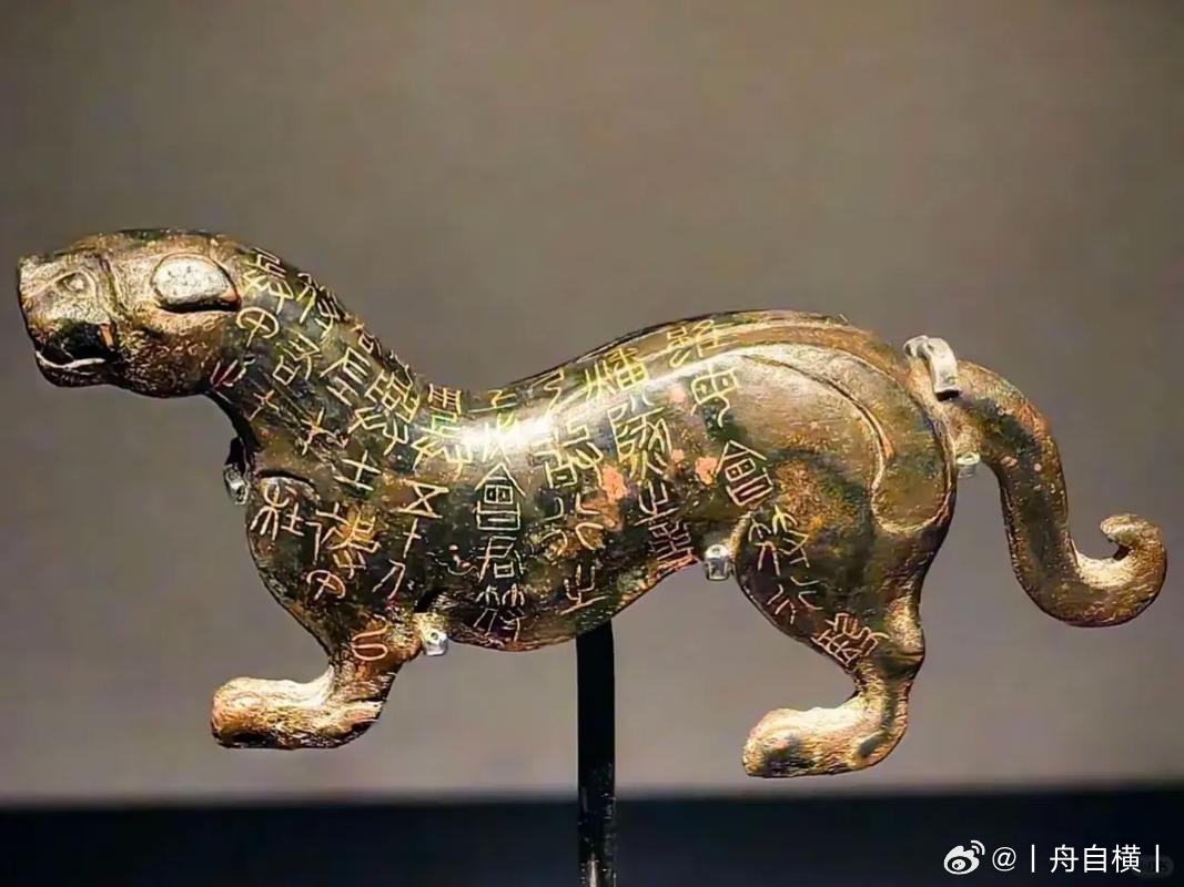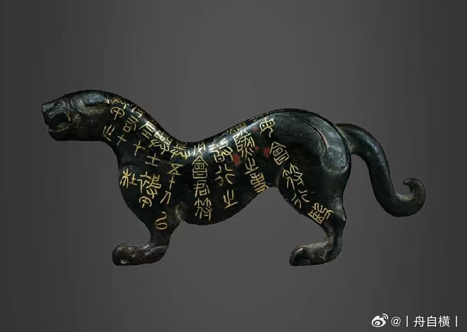 秦法:调兵五十人以上,需经国君同意错金杜虎符,是战国晚期秦国铸造的青铜兵符,为调兵遣将的权威信物。其造型为猛虎疾走或蓄势之态,虎身昂首挺胸,姿态生动,长仅约9.5厘米,高约4.4厘米,小巧而威严。虎符最为珍贵的是其错金铭文——虎身镶嵌九行四十字篆书,采用错金工艺,先将阴文刻于青铜胎体,再嵌入金丝,打磨至平滑光亮,至今仍金光熠熠。铭文明确规定:“右在君,左在杜”,即右半符由国君掌握,左半符授予杜地(今西安东南)军事长官。凡调动士兵超过五十人,必须左右符相合,方可行动;但遇烽火报警等紧急军情,则可不合符而先行出兵。这体现了战国时期严密的军事制度和君主集权。杜虎符是我国现存最早的虎符实物之一,其精湛的错金工艺与严谨的军事规章,使其成为研究先秦军事史、文字演变与青铜工艺的瑰宝,亦为后世留下了“符合”一词的实物渊源。