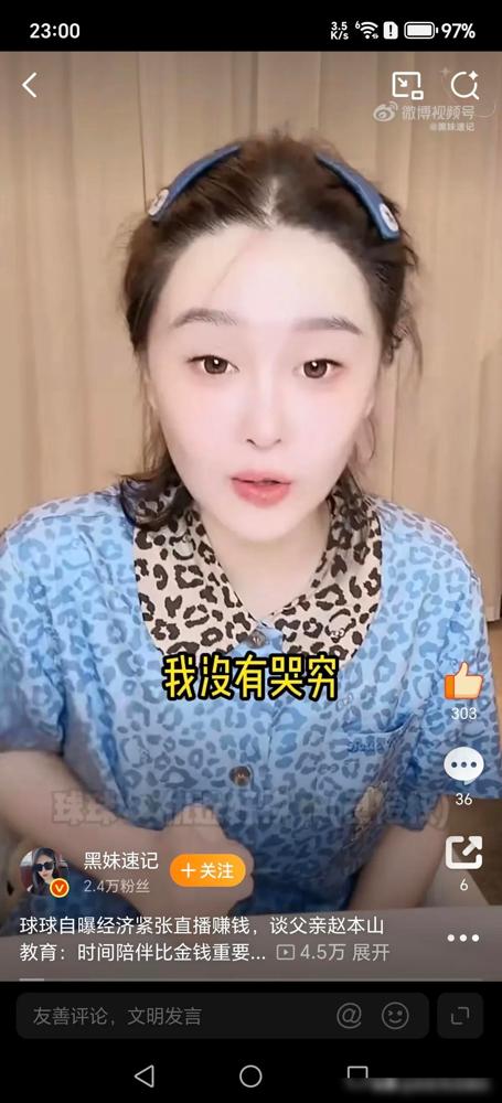赵本山女儿球球求生欲也太强了吧,当她看到闫学晶哭穷被封号,她也很害怕,她说自己没有哭穷,因为她根本没有大家想象得那么有钱。 看着她在直播间里这么极力地撇清,其实能感觉到现在的互联网环境确实变了,艺人们对“言行边界”的敏感度提高了不少。 我觉得球球这种反应反倒挺真实的,这种“害怕”其实是一种难得的清醒,总比那些还没搞清楚规则就乱说话的人强。 说起来她虽然含着金钥匙出生,但家里的规矩是真的大,她自爆小时候想买个LV包,赵本山宁愿陪她在那儿干看一个小时,最后也愣是没给她买。 很多人可能会觉得这太抠门,但我倒觉得这一个小时的“心理博弈”更有深意,赵老师这是在训练孩子对欲望的克制能力。 这种教育方式也就是老一辈常挂在嘴边的“不消耗福报”,所以哪怕现在条件这么好,家里这俩孩子牛牛和球球也都没养成那种挥霍的坏毛病。 我更在意的是他们这种不啃老的态度,其实在星二代这个圈子里,能真正做到自食其力且不被标签带偏,确实挺不容易的。 看样子赵家的三观确实传下来了,这种勤俭节约的底色,可能才是他们家在演艺圈长久立足的真正底气。 归根结底,家风这东西真不是靠嘴说的,全都藏在这些不给买包、不让乱花钱的日常细节里了。