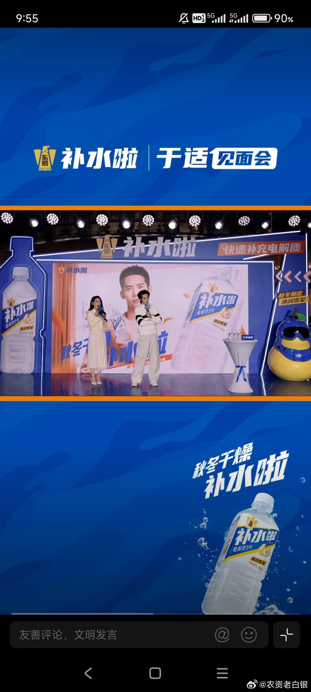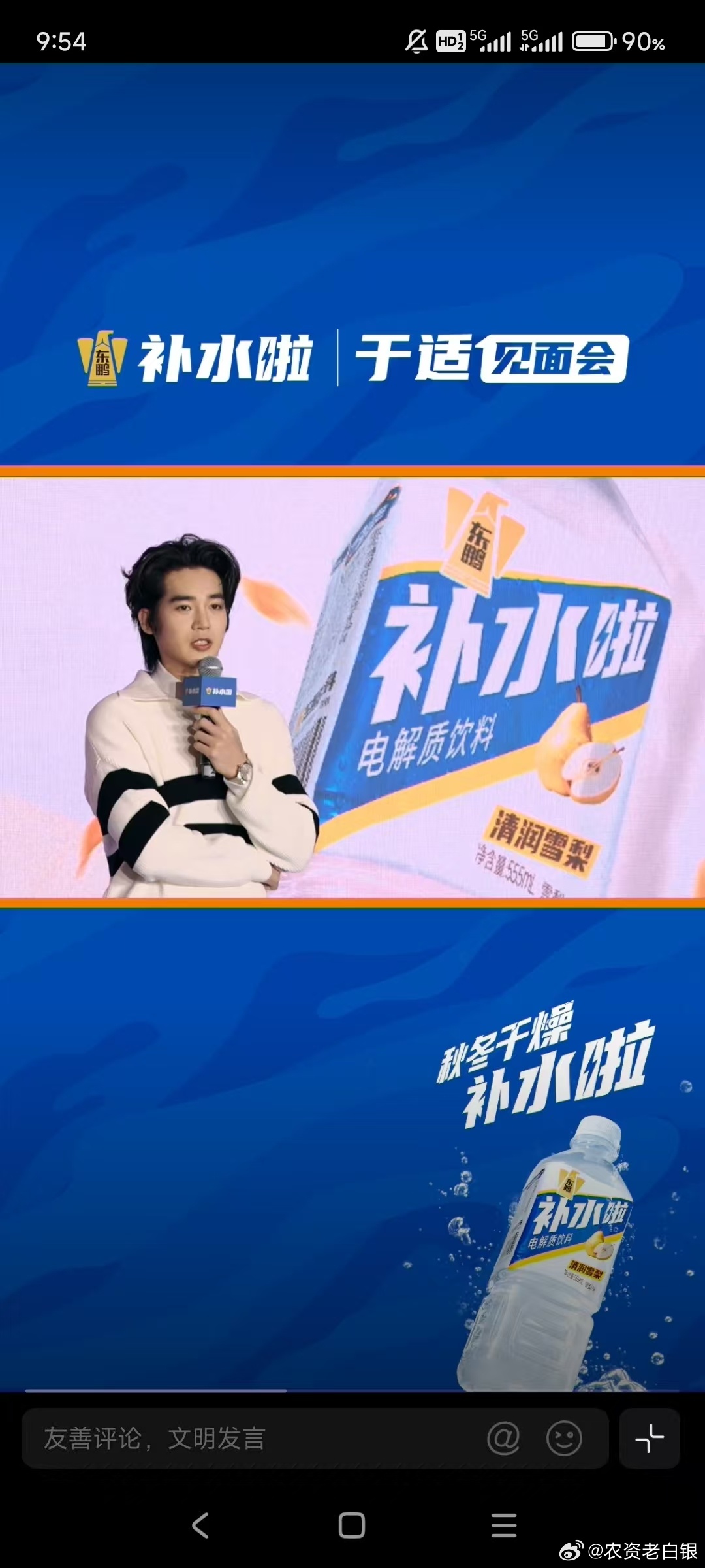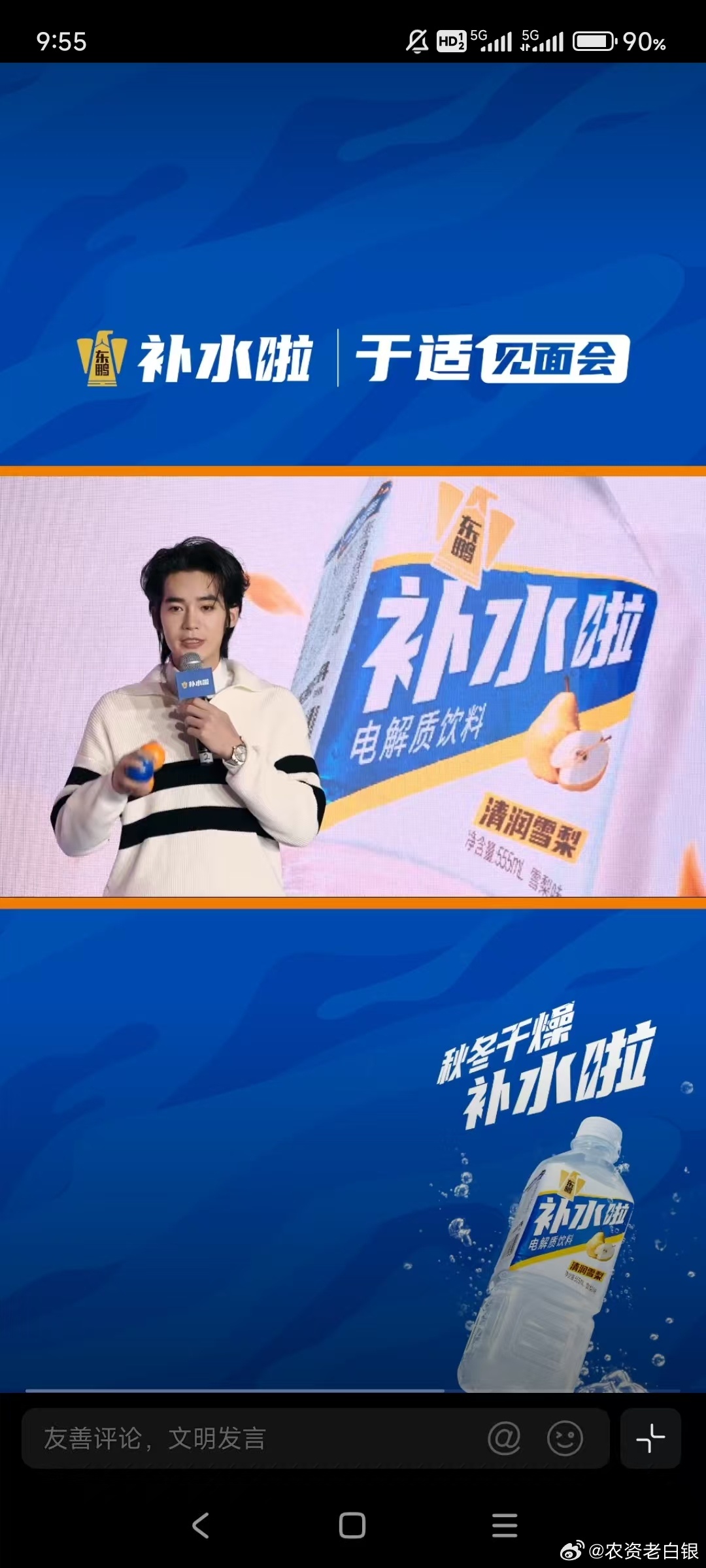 于适喊你补水啦秋冬干燥补水啦 秋冬干燥补水啦,快速补充电解质蹲守“补水啦”品牌直播,于适的亮相直接戳中心动点!他穿着清爽针织衫,分享拍戏时应对干燥气候的护肤心得,讲到兴头时拿起补水产品演示“按压上脸法”,阳光笑容配上认真讲解的模样,瞬间让人get到补水的仪式感。最戳人的是他现场拆解“内外兼修”补水逻辑,还主动示范洗脸后60秒内涂保湿产品的黄金法则,专业又接地气。跟着直播间学到超多实用妙招:洁面选温和氨基酸款,水温控制在35℃左右避免破坏皮脂膜;护肤认准含透明质酸、神经酰胺的产品,层层锁水不流失;身体护理要在洗澡后立刻涂身体乳,手肘、膝盖重点按摩。内调方面,每天喝够1.5-2升温水,搭配雪梨银耳羹滋阴润燥,睡前厚涂润唇膏和护手霜,戴棉袜过夜做深度护理。有于适同款补水攻略加持,这个冬天再也不怕皮肤干燥起皮,轻松拥有水润好状态~