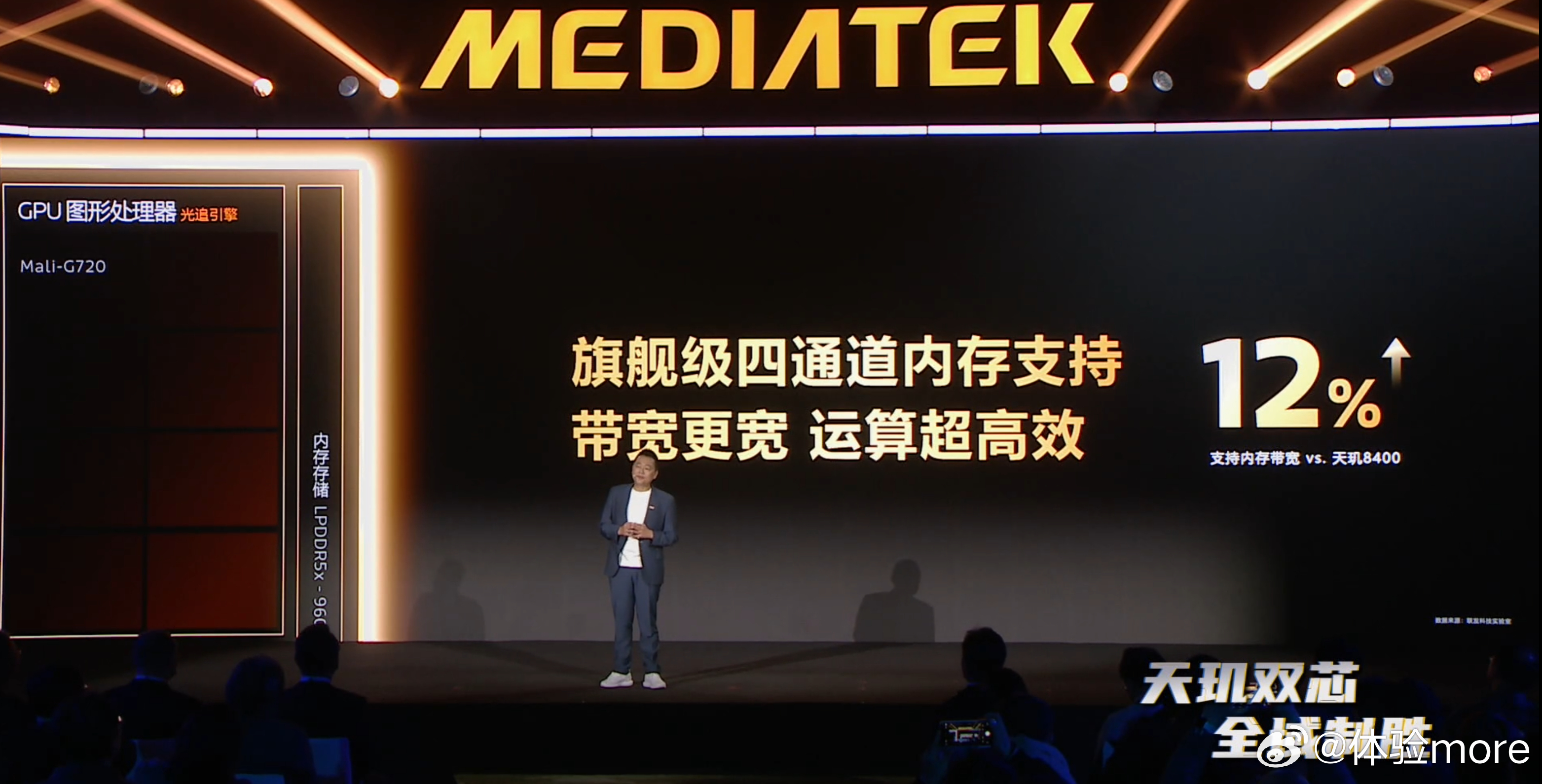 天玑8500多核性能相比天玑8400提升7%,高于Q公司25年轻旗舰。GPU峰值性能提升25%,功耗降低20%。支持四通道LPDDR5X。天玑8500:台积电N4P,CPU:1*3.4GHz Cortex-A725+3*3.20GHz Cortex-A725+4*2.20GHz Cortex-A725。GPU:Mali-G720 MC8。天玑双芯全域制胜