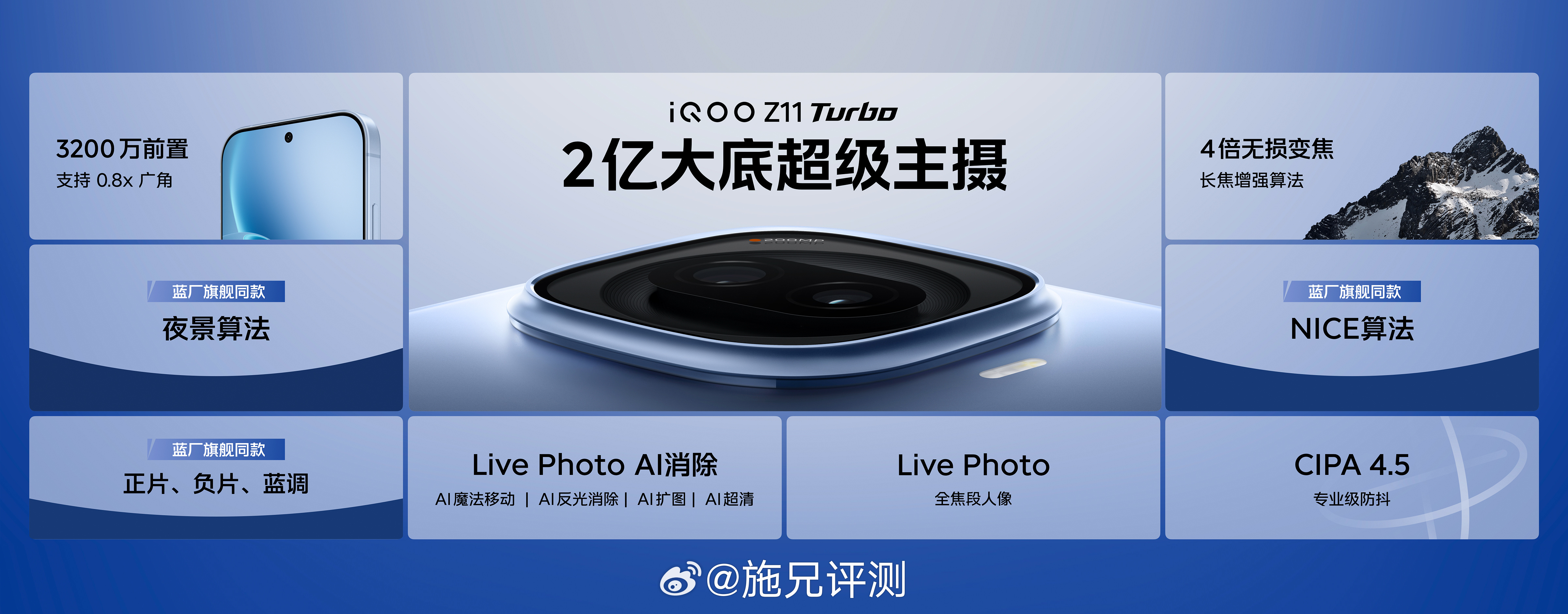 iQOO Z11 Turbo发布,售价2699元起,首销期立减后仅售2399元起,国补到手价2039.15元起。①强悍双芯:第五代骁龙8旗舰芯片、自研电竞芯片Q2支持1.5K+144FPS超分超帧并发、同时搭载iQOO15同款Monster超核引擎、安兔兔综合跑分359W+;②性能体验:144Hz护眼电竞屏、寰宇电竞网络系统2.0、电竞信号增强芯片雷霆Z1;③旗舰体验:全新一代超声波3D指纹解锁、IP68/IP69防尘防水;④沉浸游戏:至高3200Hz瞬时触控采样率、4D游戏振感、自研游戏超感音域、光线追踪、智能高光录制;⑤续航散热:7600mAh蓝海大电池、第二代半固态电池技术、100W超快闪充、冰穹双网散热系统;⑥清晰影像:2亿大底超级主摄、4倍无损变焦+长焦增强算法、3200万前置支持0.8x广角、全焦段人像和Live Photo。