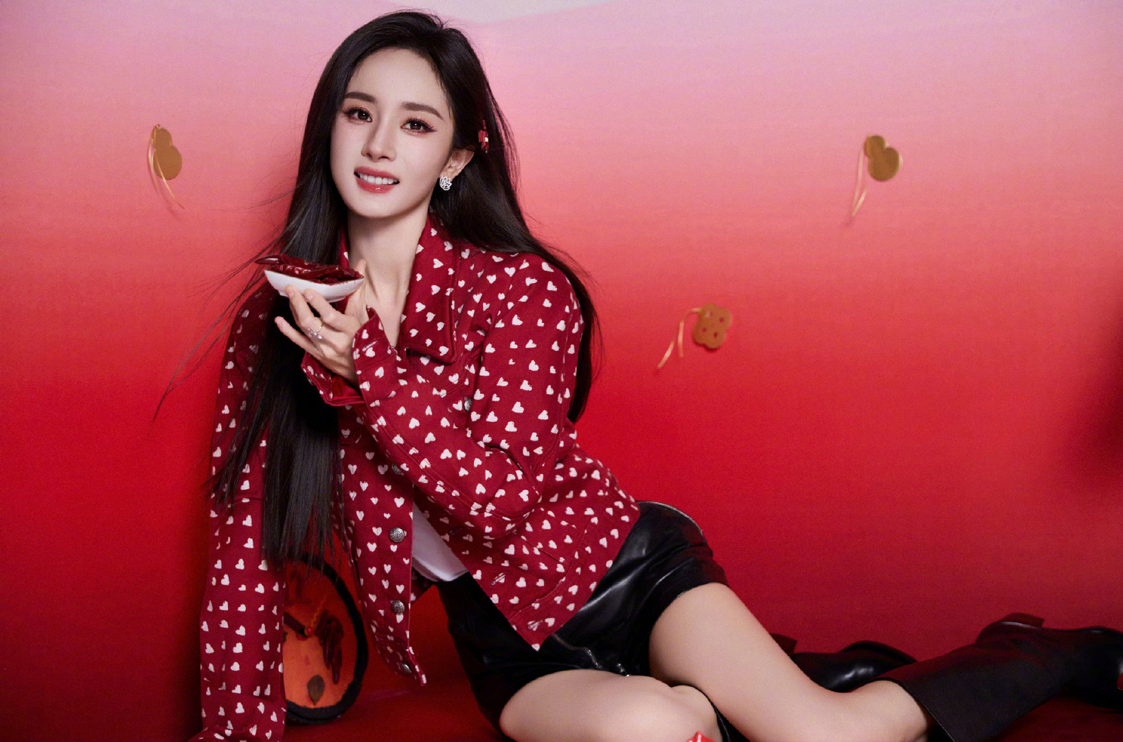 杨幂杨幂满红爱心马甲造型啊啊啊啊啊,今天真的吃的太好了!!这套造型太好看了!!杨