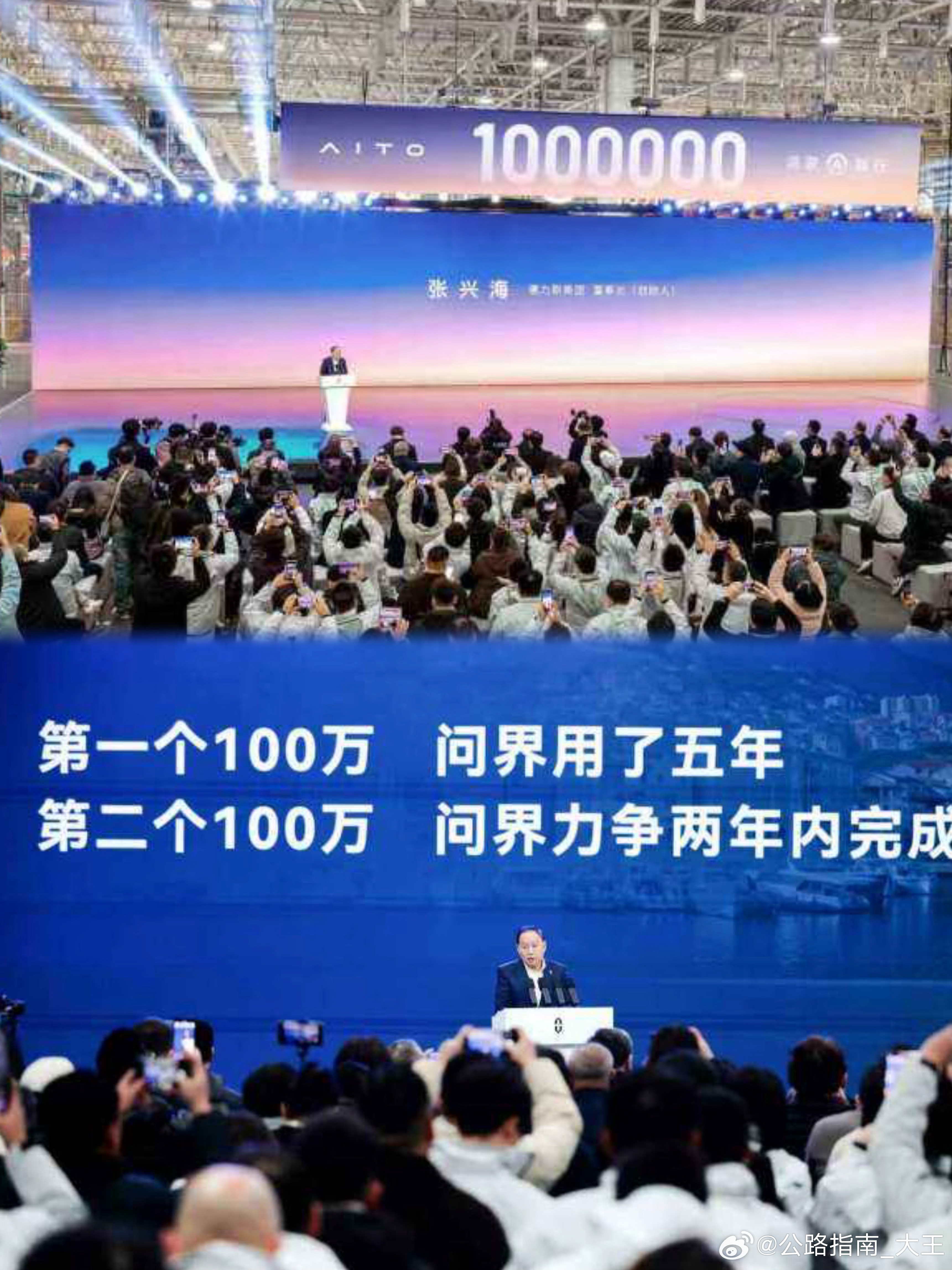 问界第100万辆整车正式下线 从0到100万台,用时46个月赛力斯集团董事长张兴海表示:第一个100万问界用了5年时间。我们经营团队立下军令状了,第二个100万争取两年之内完成赛力斯这家企业挺有意思,每一次转型都踩准行业节奏,而且在危难时刻,总有贵人扶持第一次创业:从弹簧厂起步,迅速占领90%以上的摩托车减震器弹簧细分市场,完成原始积累第二次转型:从零部件到整车制造,与东风汽车合资成立东风渝安车辆有限公司,推出东风小康品牌,正式进军微型车市场,皮实的形象,成为一代神车第三次转型:全面押注新能源,开启智能汽车新征程,收购电池公司InEVit,获取核心电池管理技术,推出瑞驰新能源品牌,进军电动物流车市场;发布高端品牌“赛力斯”,推出首款车型赛力斯SF5,搭载自主研发的增程技术,但市场反响平淡,年销量不足千辆,转型遭遇挫折第四次转型:与华为深度合作,问界品牌诞生,从“供应商-主机厂”升级为“联合设计+华为赋能+赛力斯制造”的三位一体深度耦合,覆盖产品定义、研发、生产、销售、服务全链条,完成从传统车企到智能汽车巨头的华丽转身大v聊车