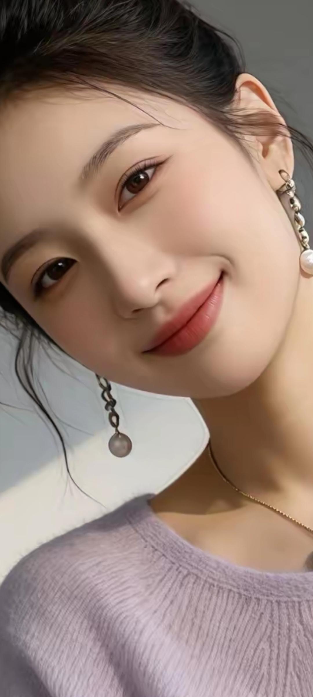 甜美少女风,精致妆容,闪耀耳环,温柔微笑