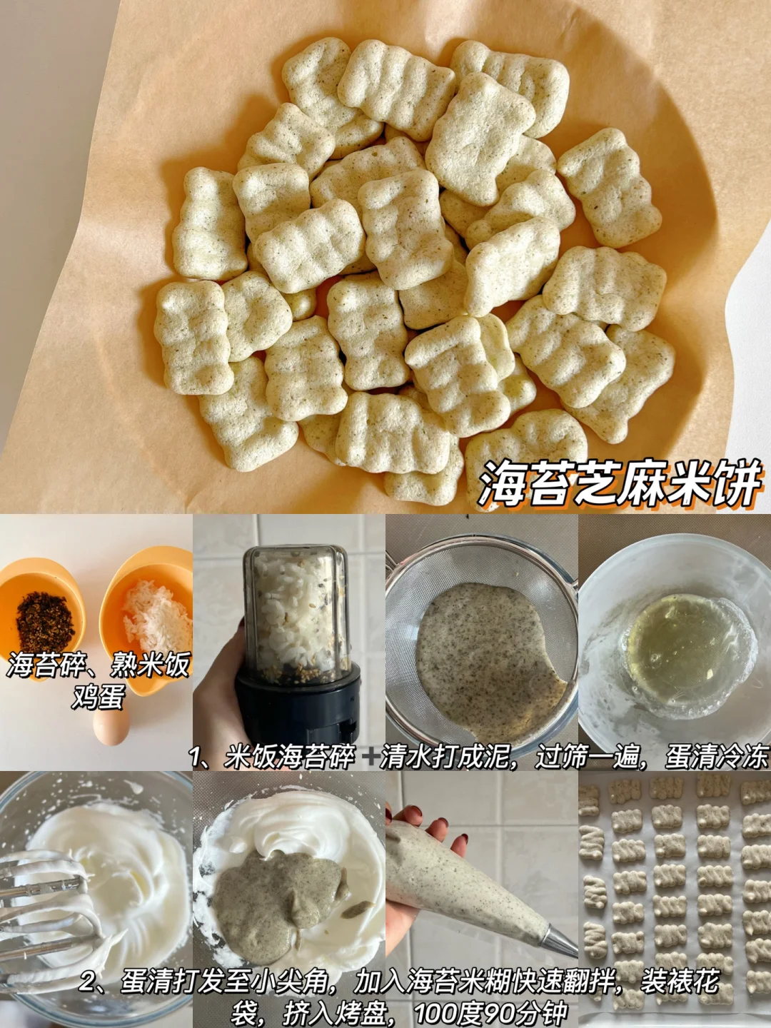 食材:熟米饭70克、牛奶50毫升、蛋清2个、芝麻海苔粉适量