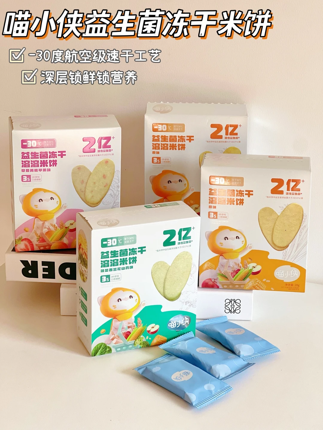 而且他家采用了航空级速干工艺,保留更多食材本身鲜养成分,宝宝吃了也不用担心上火(这点真的要竖个大拇指)[赞R],平时带出门很方便,小袋包装,一块一袋,量也正好,不用担心孩子不好好吃饭,像比较小的宝贝吃起来也不会怕她卡喉,因为是入口即软滴,而且我最惊喜的就是它的成分里有2亿➕益生菌,4倍呵护,有利于孩子的吸收,真的不要太棒,别说孩子爱吃,我都爱上了,妈妈们放心冲✌️