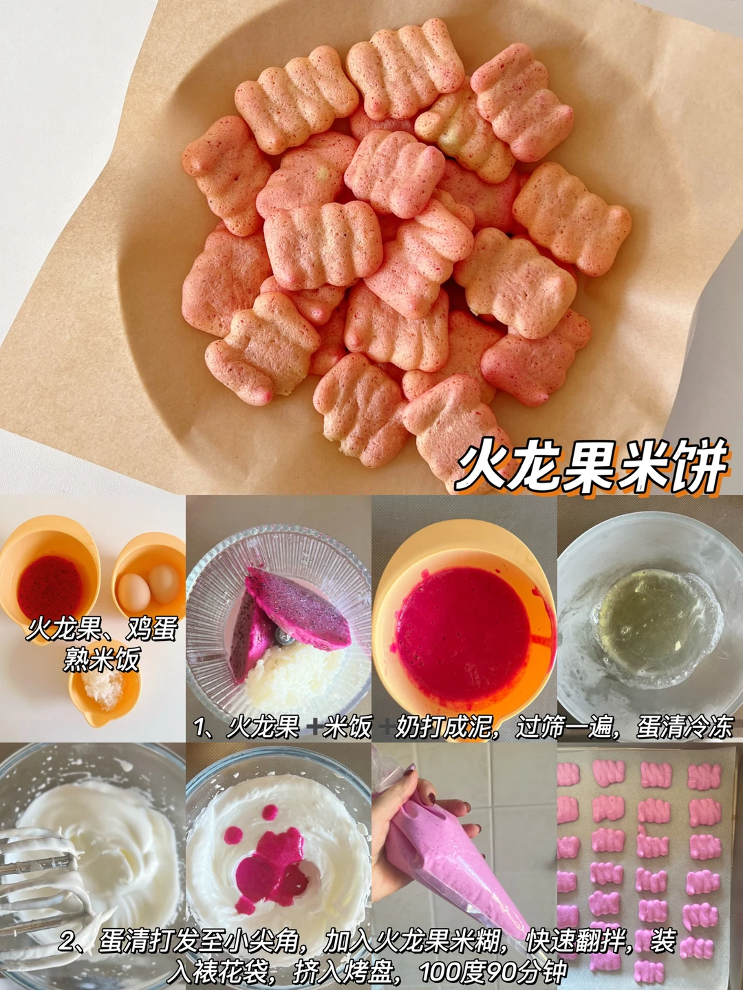 食材:熟米饭40克、火龙果60克、蛋清2个