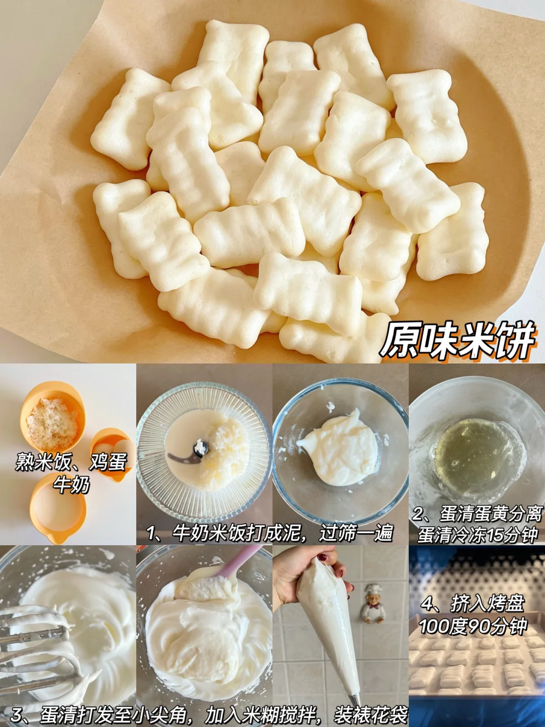 食材:熟米饭80克、牛奶60毫升、蛋清2个