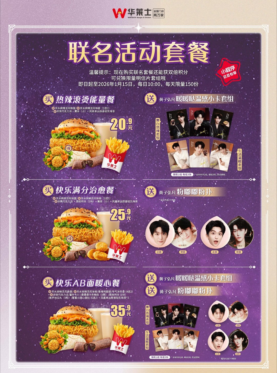 华莱士黄子弘凡两种温暖 华莱士冬日双重温暖暴击!黄子弘凡小卡+川味汉堡太绝了🔥“一个冬天,两种温暖”真的不是噱头!作为常年蹲华莱士新品的吃货,这次冲着黄子弘凡限定周边冲了两套套餐,没想到不仅顺利集齐两套小卡,新品的味道更是直接戳中我的四川胃,热辣与甜蜜双在线,这个冬天的快乐被华莱士承包了~🥳先晒欧气!两套套餐拿下两套限定小卡✨一开始还担心小卡会重复,特意分两次下单了不同的双人套餐,拆开包装的瞬间直接狂喜!每套套餐都附赠了【暖暖哒温感小卡套组】,一套三张,双面覆着细闪膜,光照下blingbling的,还带着烫金印签,质感完全不像快餐赠品。最惊喜的是温感设计!用手心捂一会儿,小卡背面的隐藏文案就会慢慢显现,带着黄子弘凡的温柔寄语,摸起来磨砂质感超舒服,收藏党表示直接狂喜~ 两套小卡风格还不一样,一套是舞台感满满的帅气造型,另一套是搭配巧克力派的生活感画面,每一张都戳在审美上,已经火速放进卡册好好保存了!除了小卡,套餐里的【粉嘟嘟粉扑】也超惊喜,一盒两款四面设计,一面是黄子弘凡的帅气大头贴,另一面是简约logo,美妆级的细腻手感,软乎乎的捏起来超解压,既能上妆用又能当收藏摆件,实用性和颜值双在线。热辣温暖:天水麻辣烫风味汉堡,四川人认证的地道!🌶️作为无辣不欢的四川人,一开始还担心“麻辣烫风味汉堡”是黑暗料理,结果第一口就被打脸——这味道也太正宗了吧!汉堡胚还是熟悉的松软口感,里面的鸡腿肉煎得外酥里嫩,裹满了红油料汁,辣度刚好是四川人爱的中辣,带着干花椒的麻香,越吃越上瘾,完全不燥喉。最绝的是里面加了吸满料汁的魔芋爽,Q弹有嚼劲,一口下去既有汉堡的扎实饱腹感,又有天水麻辣烫的锅气,仿佛在吃现煮的麻辣烫,每一口都裹着红油香气,配着新鲜生菜解腻,层次超丰富。作为四川人必须说一句:这个辣度和香味真的很懂我们!不用额外加辣就够味,搭配可乐一口下去,热辣过瘾,冬天吃完全不冷,暖到胃里超舒服~甜蜜温暖:流动巧克力派,浓郁到治愈一切🍫如果说麻辣烫汉堡是热辣担当,那浓情巧克力派就是冬日甜蜜治愈剂!刚拿到手还是温热的,轻轻一掰,丝滑的黑巧流心就涌了出来,差点溢到手上,视觉冲击力直接拉满。选用的是100%巴西进口可可豆,0代可可脂配方,吃起来完全不齁甜,反而带着淡淡的微苦,醇厚又丝滑。外皮酥酥脆脆,还添加了可可粉,从里到外都是浓郁的巧克力香,咬下去“咔嚓”一声,外皮的酥脆和内馅的丝滑形成完美反差,凉了之后外皮依然酥脆,流心也不会凝固,甜度刚好,吃完完全不腻。作为巧克力脑袋,真的一口就沦陷,无论是当正餐的配菜还是下午茶甜点都超合适,寒冷的冬天咬上一口,甜蜜直接涌上心头,治愈所有不开心~套餐搭配&真实体验总结💡这次买的两套都是双人套餐,除了新品汉堡和巧克力派,还搭配了薯条和可乐,分量很足,两个人吃完全够,性价比超高,30多块钱就能吃到新品+拿到限定周边,真的太值了。两种温暖的真实感受:- 热辣温暖:麻辣烫汉堡的香气和辣度,让冬天通勤路上都变得有盼头,吃完浑身暖暖的,满足感爆棚;- 甜蜜温暖:巧克力派的流心和小卡的温柔设计,加班或者心情不好的时候,吃一口甜、看看喜欢的周边,瞬间被治愈。这个冬天的“热辣小事”,是和朋友分享汉堡时的酣畅淋漓;“甜蜜小事”,是拆到心仪小卡、咬到流心巧克力的瞬间,而这两种温暖,华莱士都精准拿捏了~最后想说:闭眼冲就对了!✅无论是冲着黄子弘凡的限定周边,还是想尝试新品口味,这次的华莱士套餐都不会让你失望。小卡和粉扑的质感远超预期,新品味道又精准戳中吃货心,热辣与甜蜜的双重温暖,真的能承包整个冬天的快乐。已经推荐给身边的朋友和追星搭子了,现在下单还有联名双面手提袋,颜值也超高,小孩子才做选择,美食和周边当然要全部拿下~你们有没有冲这次的新品套餐?抽到了什么小卡?欢迎在评论区分享你的冬日温暖小事呀~👇