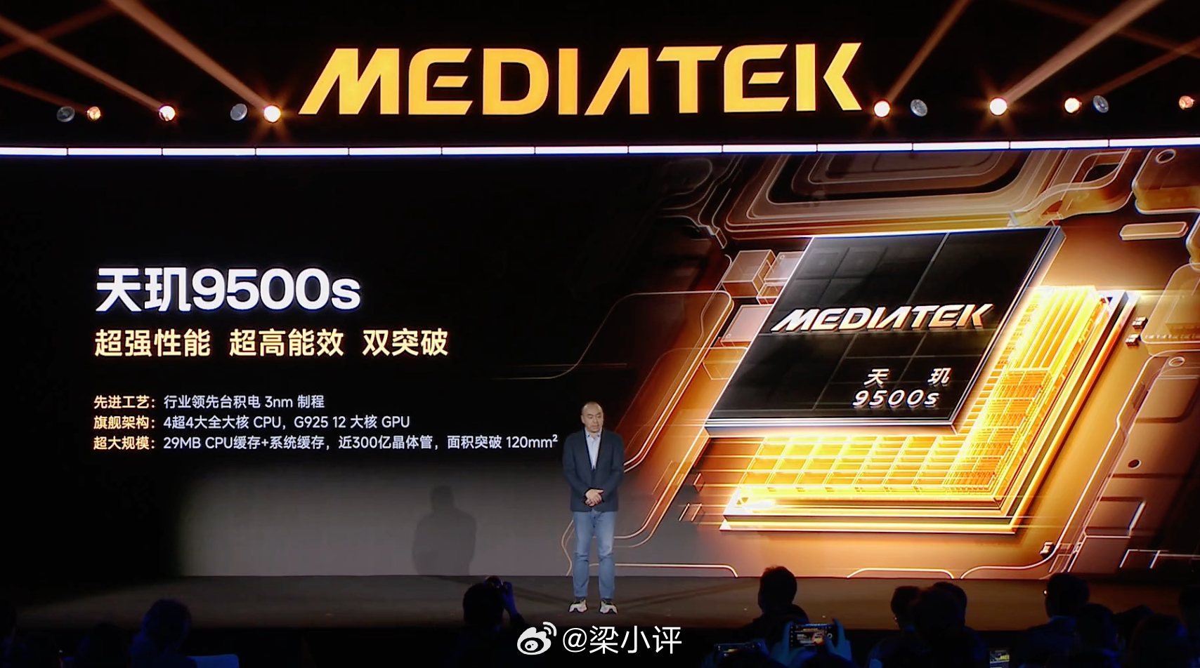 天玑9500s发布台积电N3E制程工艺CPU架构:1颗3.73GHz Cortex-X9253颗3.3GHz Cortex-X44颗2.4GHz Cortex-A720GPU:Immortalis G925 MC1229MB L2/L3缓存组合支持硬件级光线追踪、165Hz 超高帧 8K 全焦段杜比视界 HDR 录制安兔兔实验室跑分361万REDMI Turbo5 Max将全球首发搭载天玑9500s,目标2.5K性能之王!vivo和OPPO也将发布搭载天玑新品的新手机新机来了