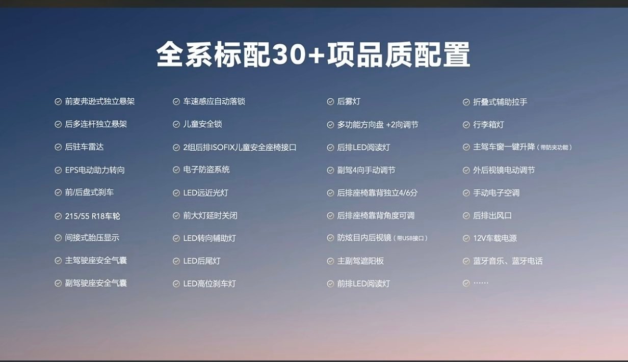 全系标配30多项配置,甚至还有儿童安全锁和ISOFIX接口,对有娃家庭也太友好了