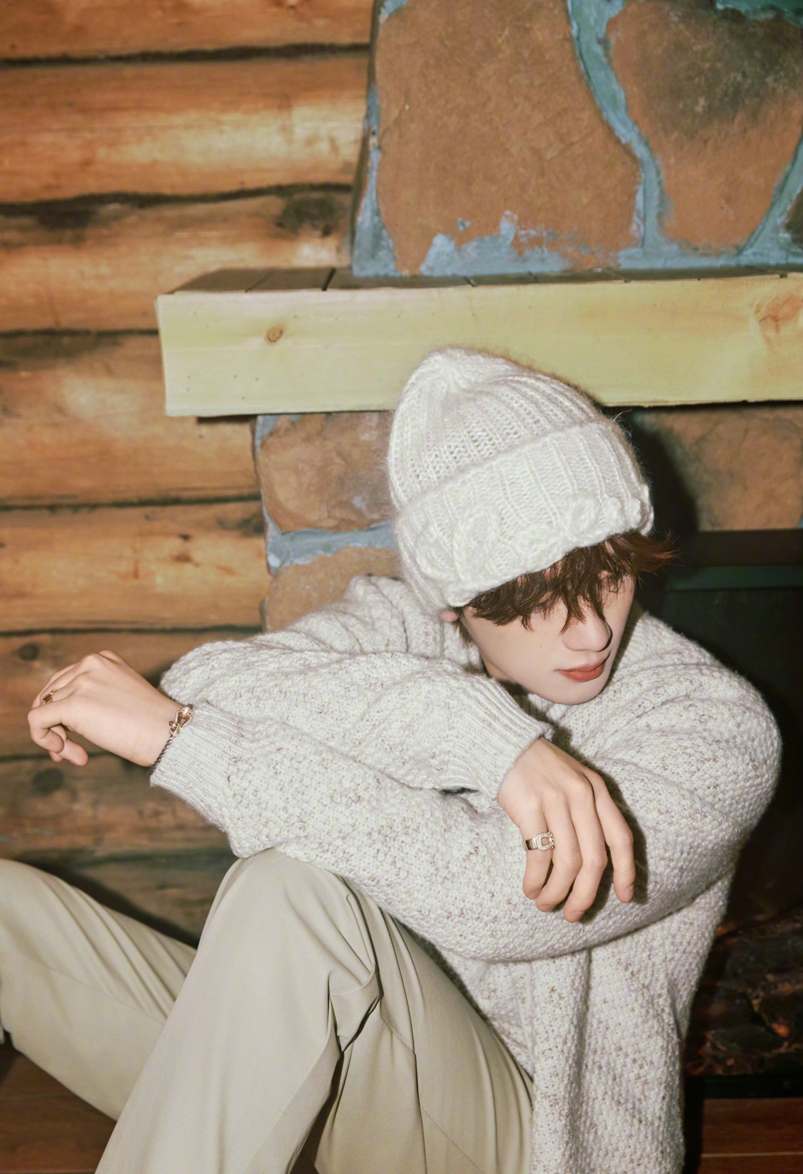丁程鑫 in Loro Piana 📸🧣❄️ 同色系针织毛衣和帽子,Fred 珠宝点缀指腕间,温暖的风格造型,冬日的清俊美好。